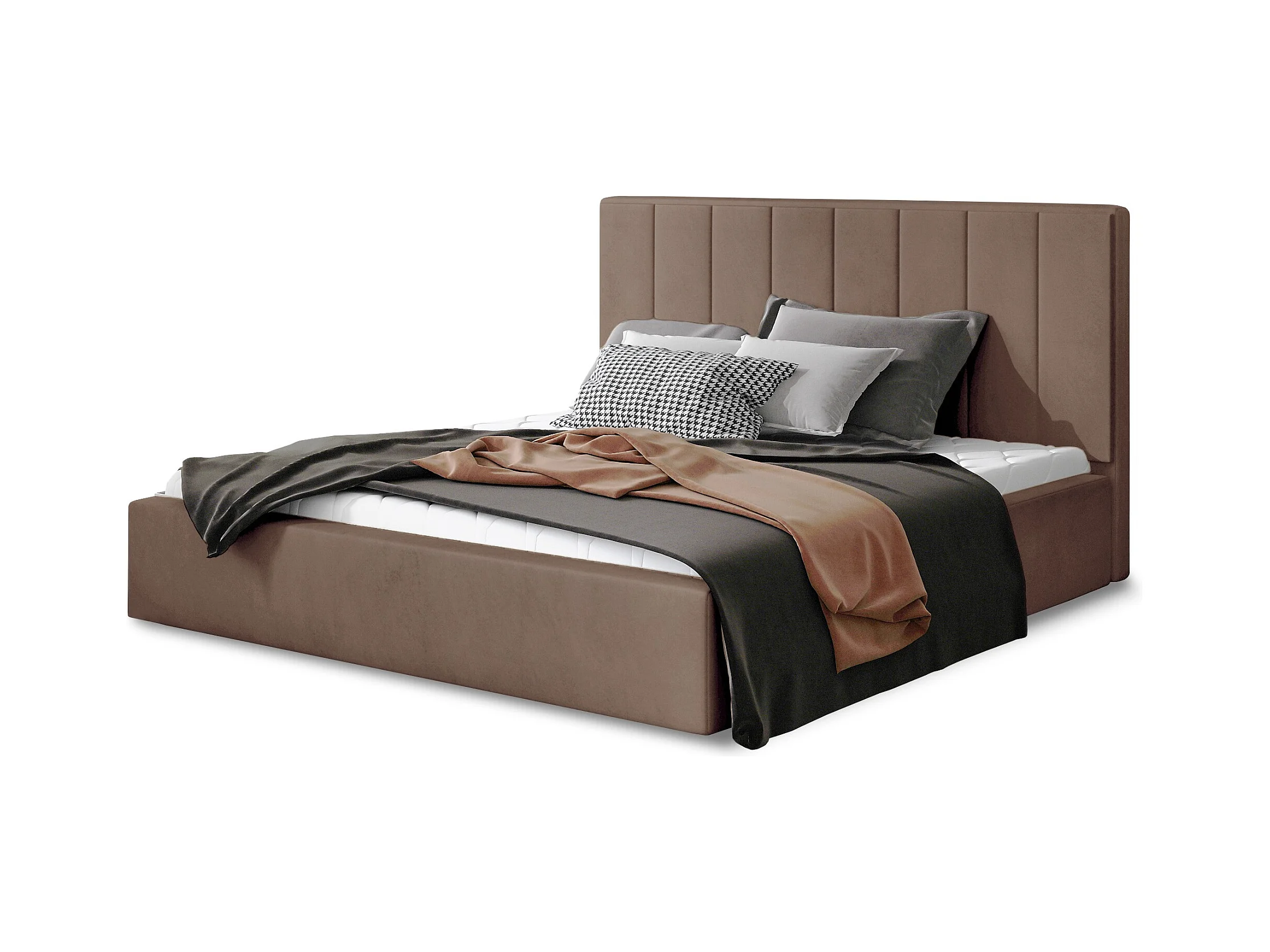 Lit adulte avec coffre de rangement Vareza – Velours matelassé-Marron clair-160x200