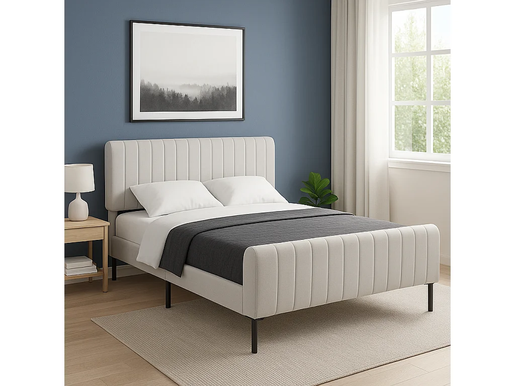 URBAN MEUBLE Lit rembourré en lin gris-beige cadre lit double King 160x200cm