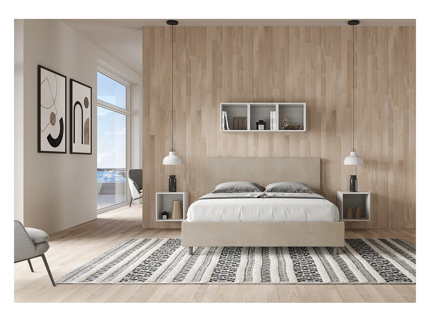 Lit sans sommier rembourré 160x200 microfibre sable Adele