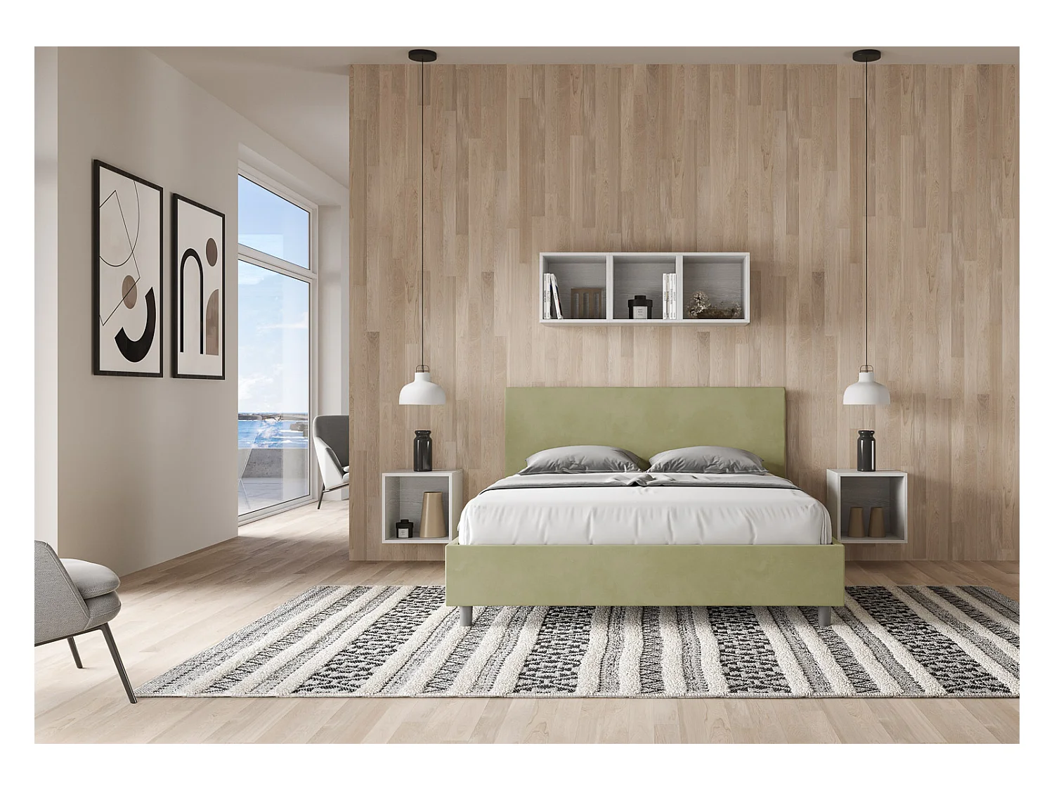 Lit sans sommier rembourré 160x200 microfibre vert Adele