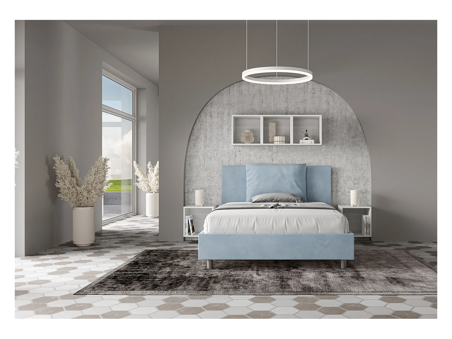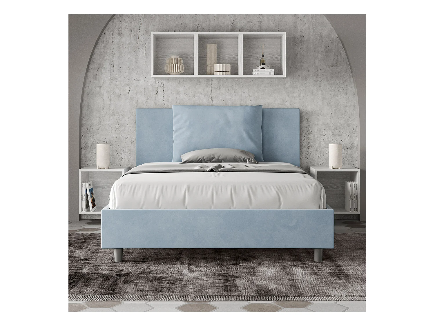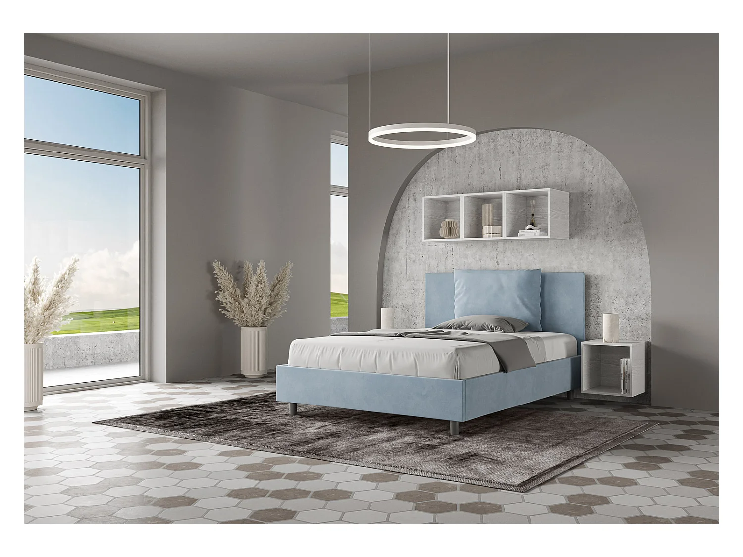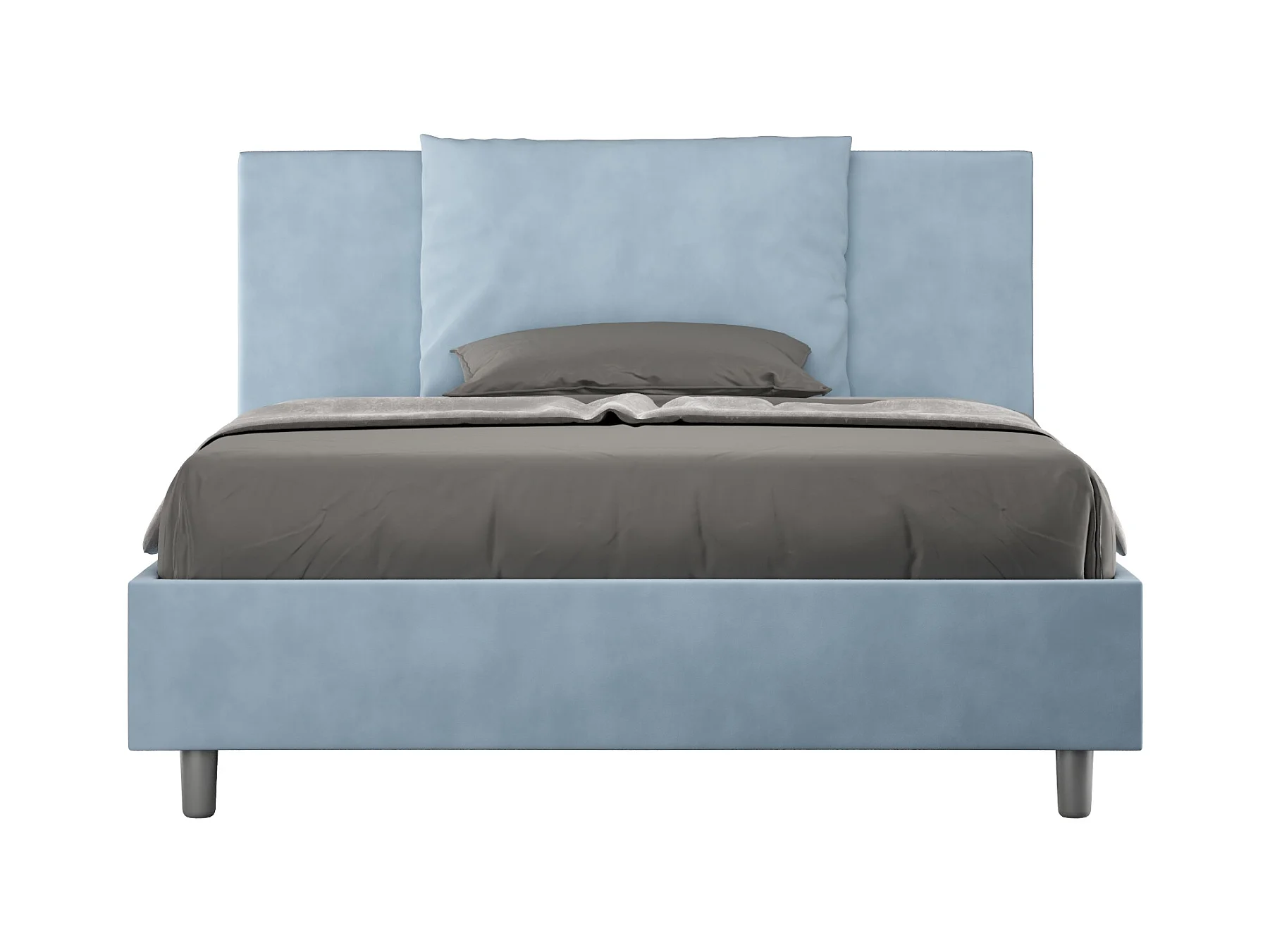 Lit double sans sommier rembourré 140x210 microfibre bleu clair Antea