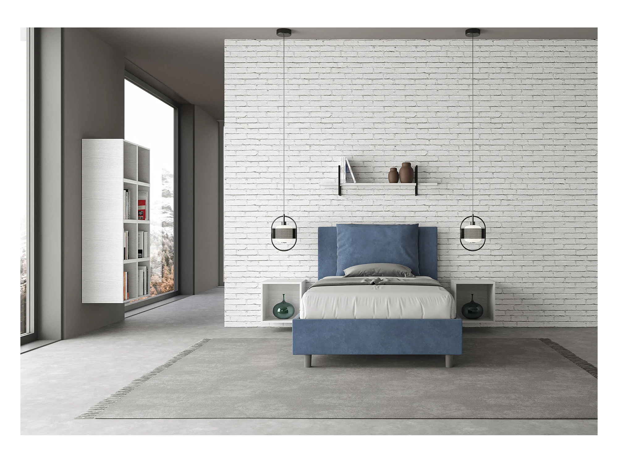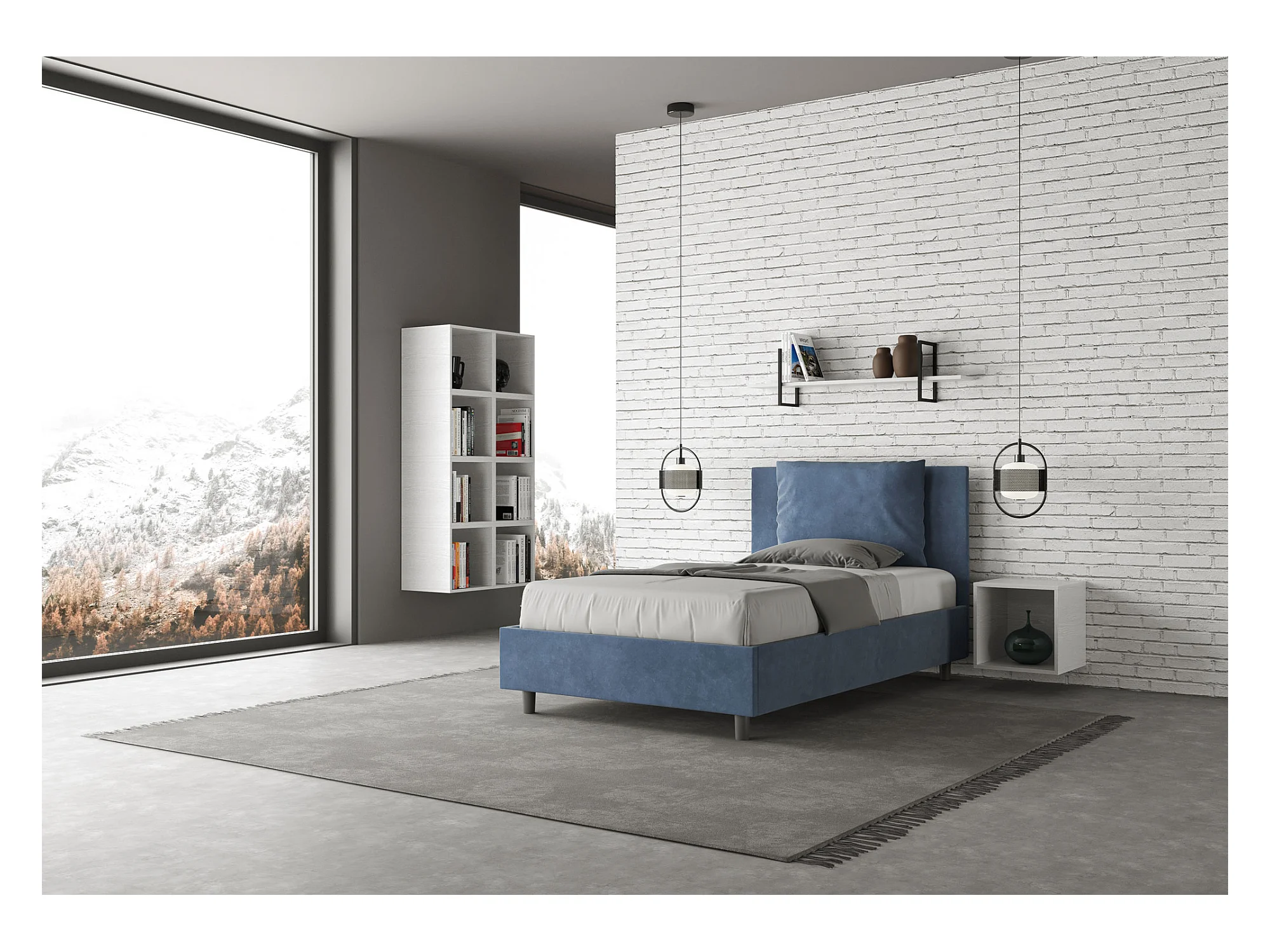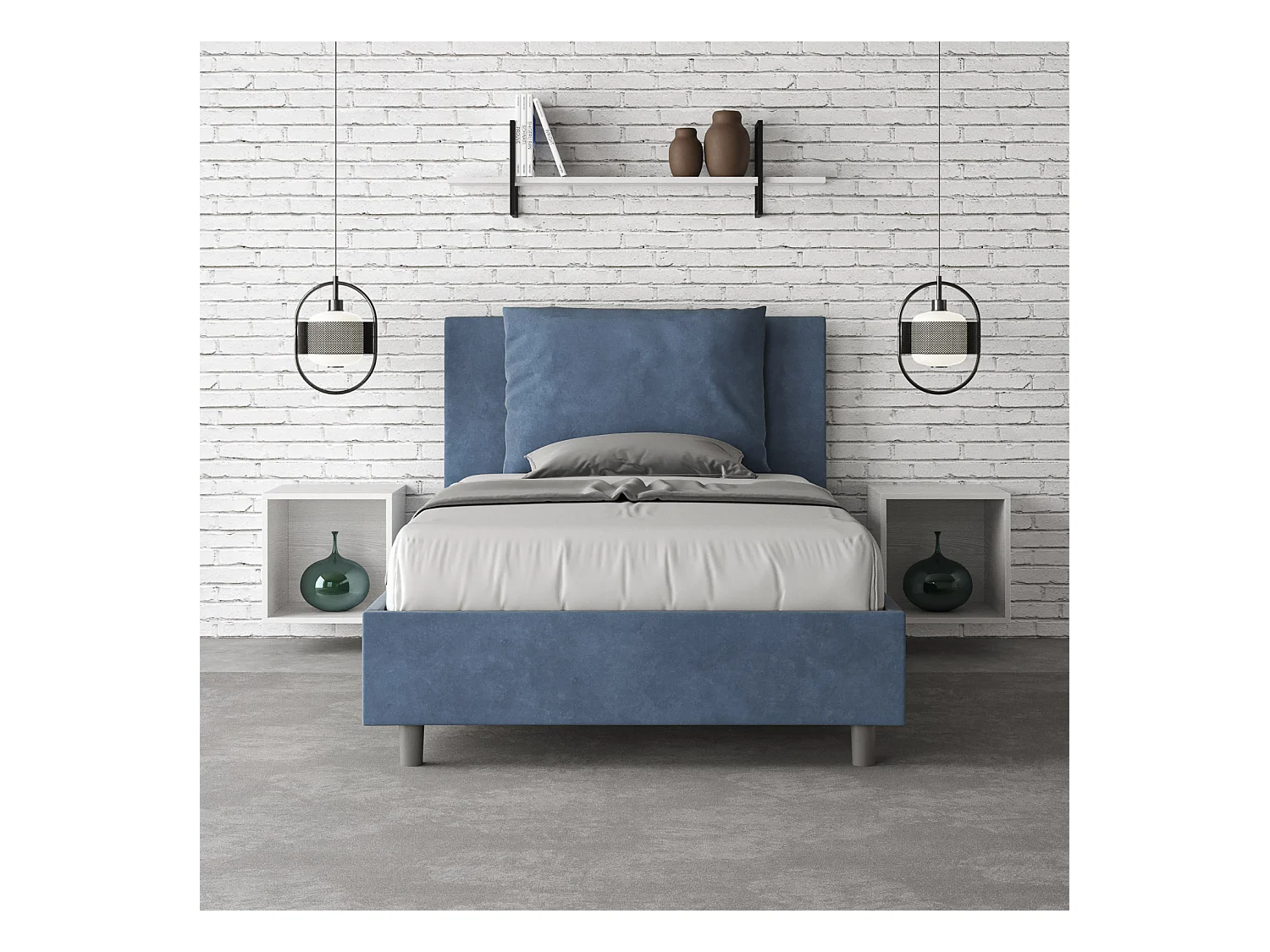 Lit 1 place et demi sans sommier rembourré 120x190 microfibre bleu Antea
