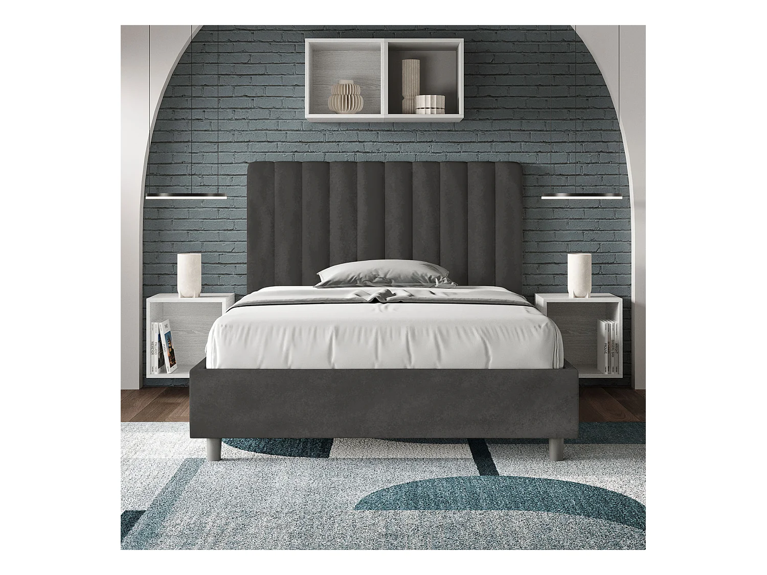 Lit 1 place et demi sans sommier rembourré 120x210 microfibre gris Agueda