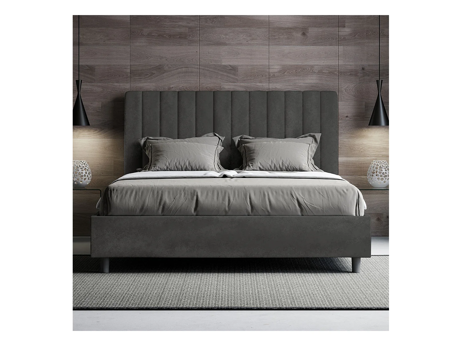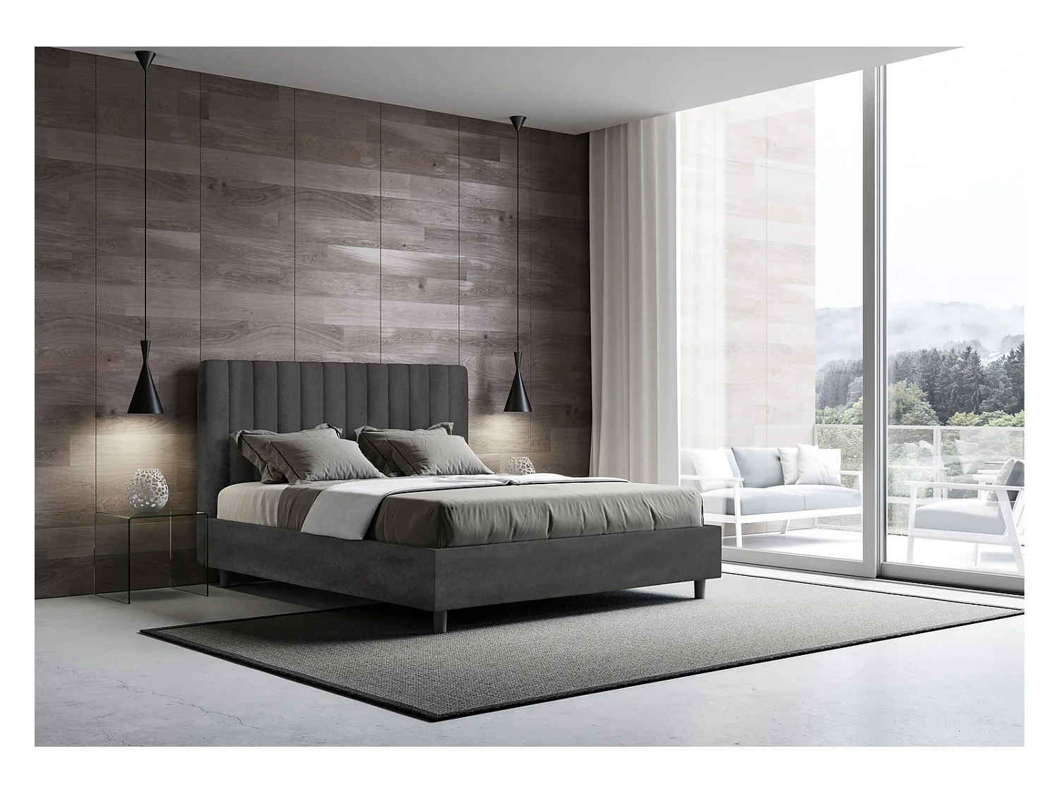 Lit sans sommier rembourré 160x190 microfibre gris Agueda