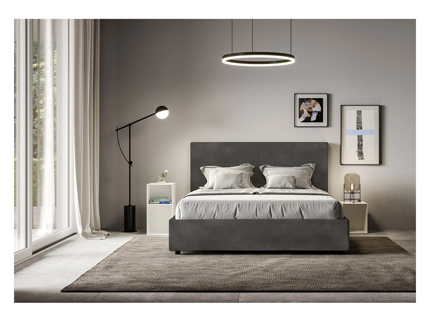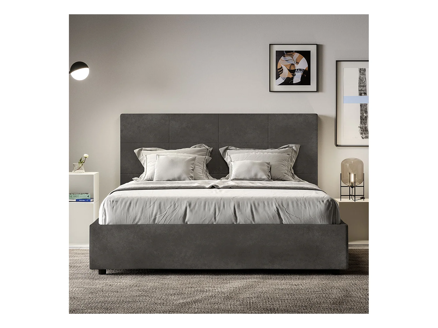 Lit sans sommier rembourré 160x200 microfibre gris Mika