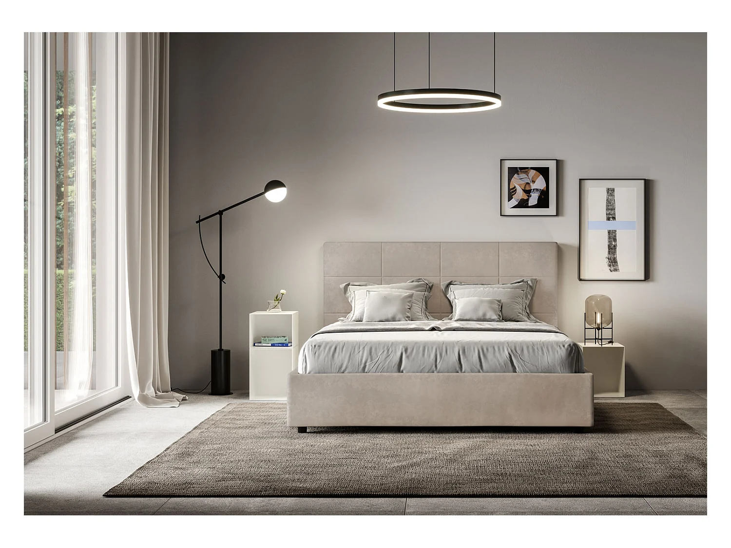 Lit sans sommier rembourré 160x200 microfibre sable Mika