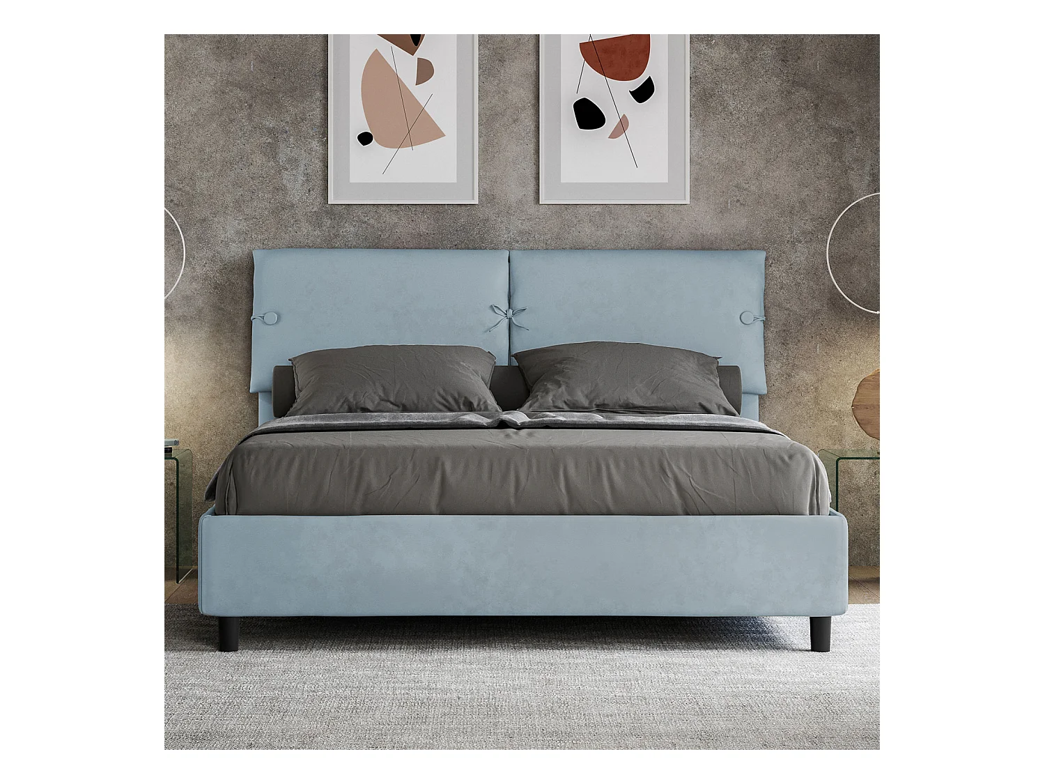 Lit sans sommier rembourré 160x210 microfibre bleu clair Sleeper