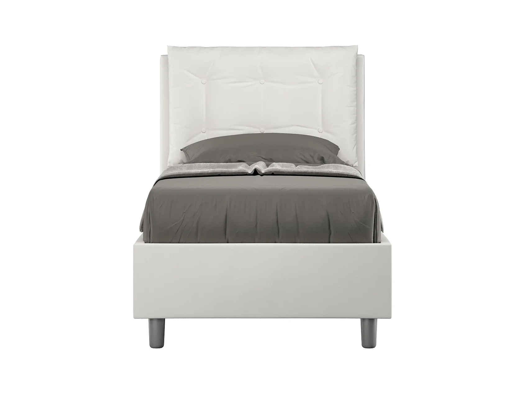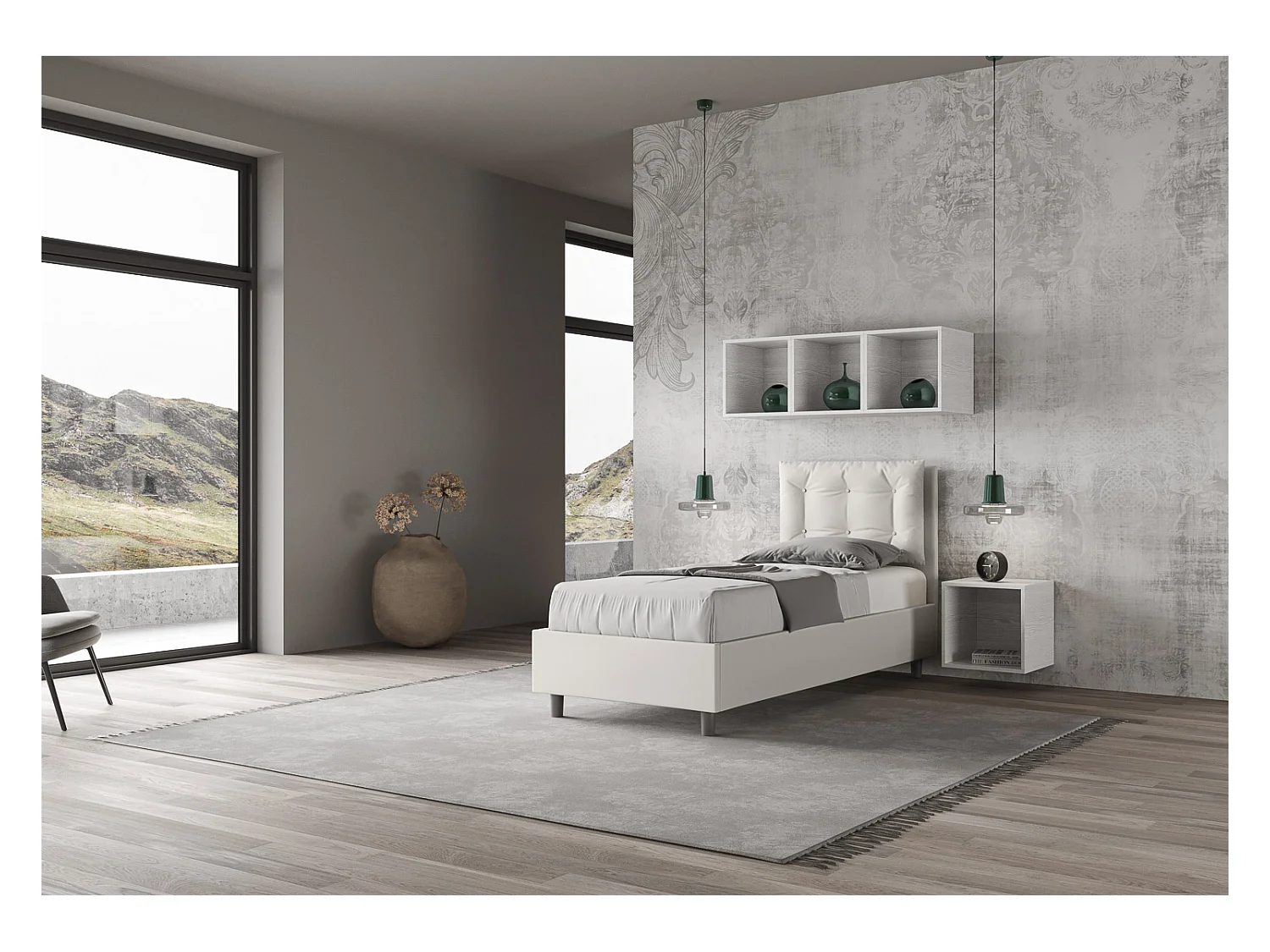 Lit rembourré en simili cuir blanc Annalisa sans sommier 80x210