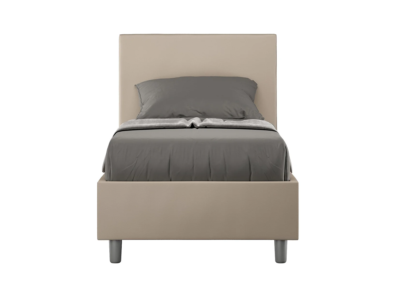 Lit rembourré en simili cuir gris tourterelle Adele sans sommier 80x200