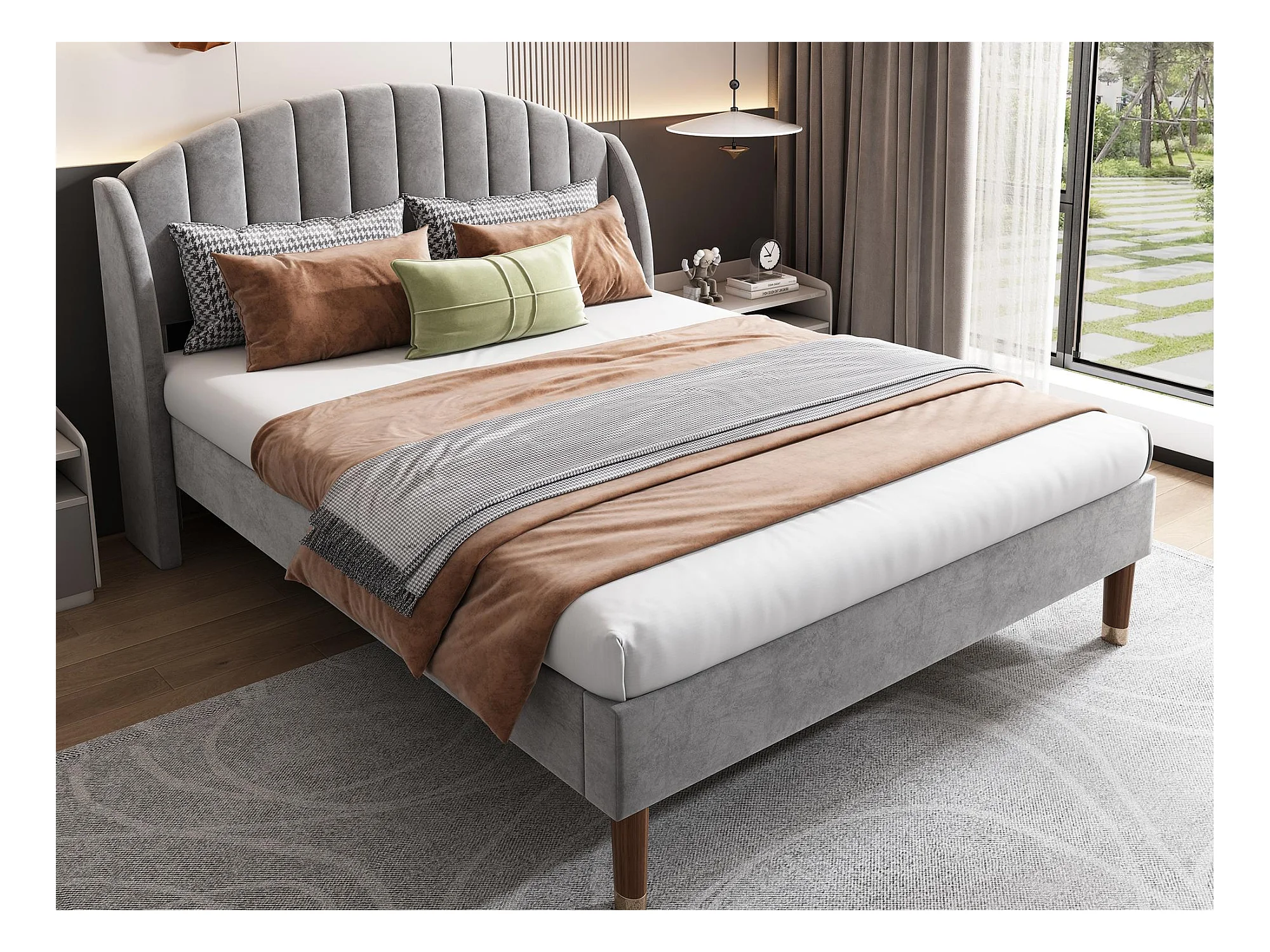 Lit rembourré 140x200cm en velours avec sommier à lattes - Gris