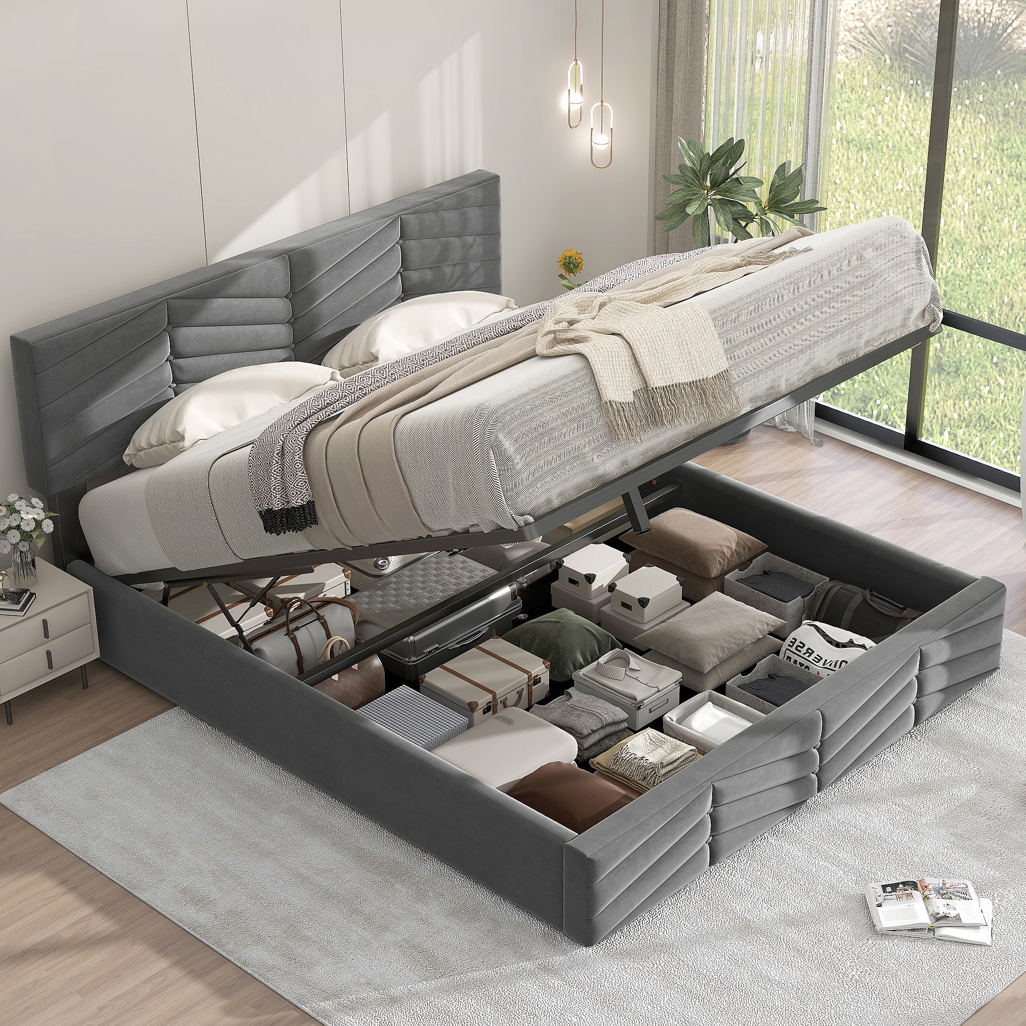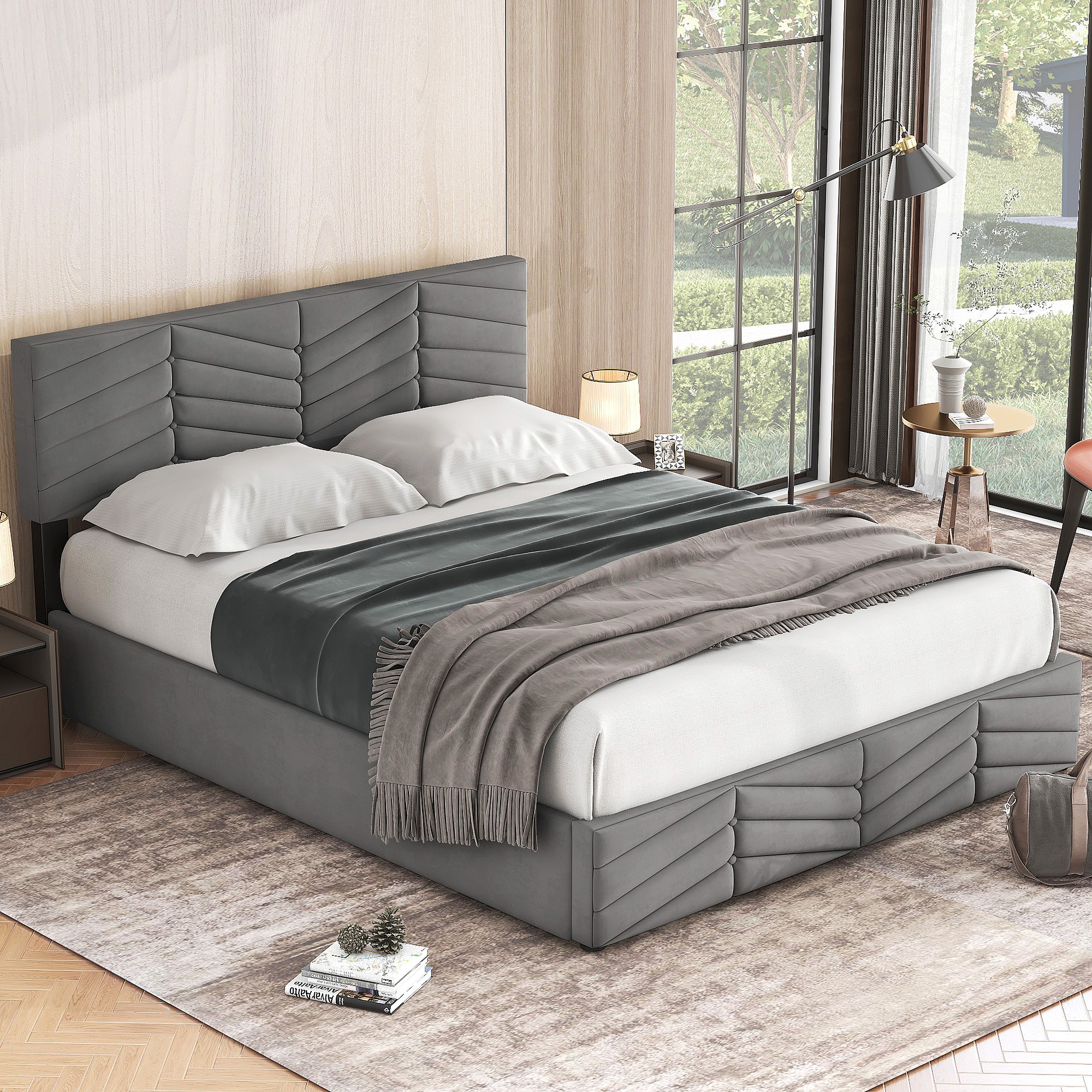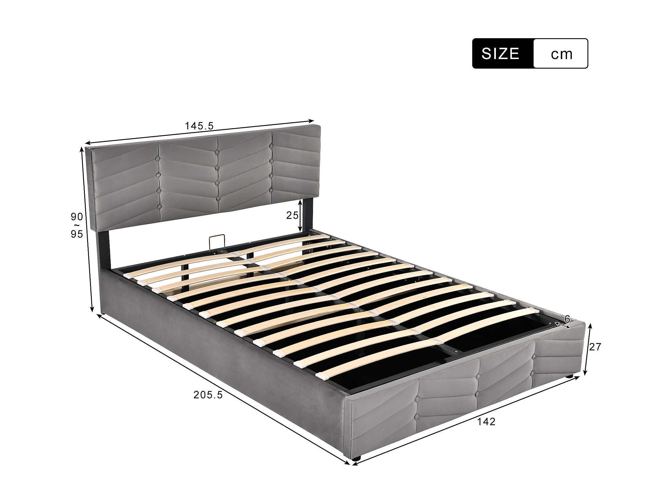 Lit rembourré gris 140x200 cm avec tête de lit ajustable et rangement pratique pour chambre adulte moderne