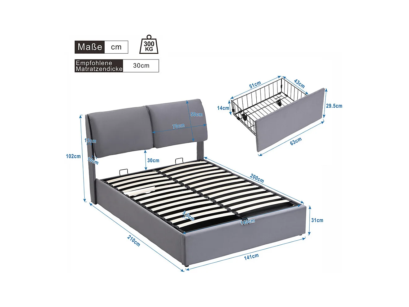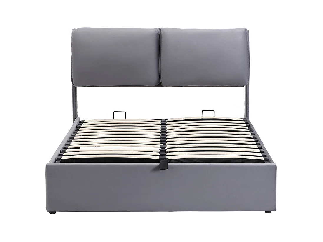 Lit rembourré hydraulique lit coffre 140x200 cm lit de rangement lit trois tiroirs lit cadre et tête de lit à lattes velours gris
