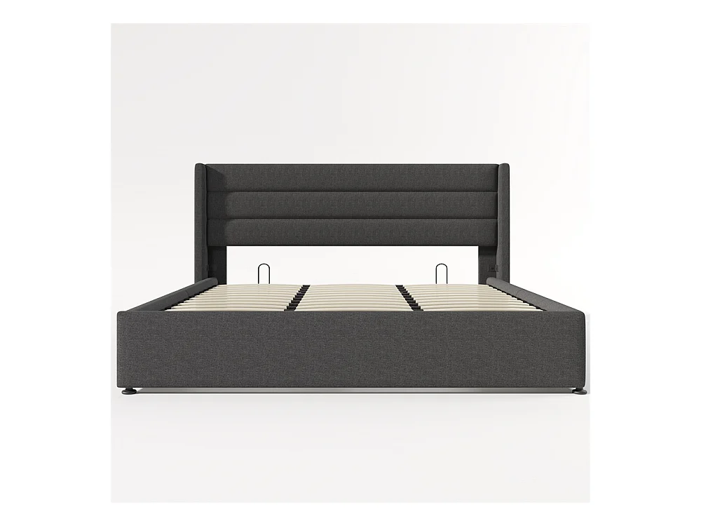 lit rembourré hydraulique lit coffre 180x200 cm lit de rangement lit sommier à lattes en bois lit en métal lit double lin gris