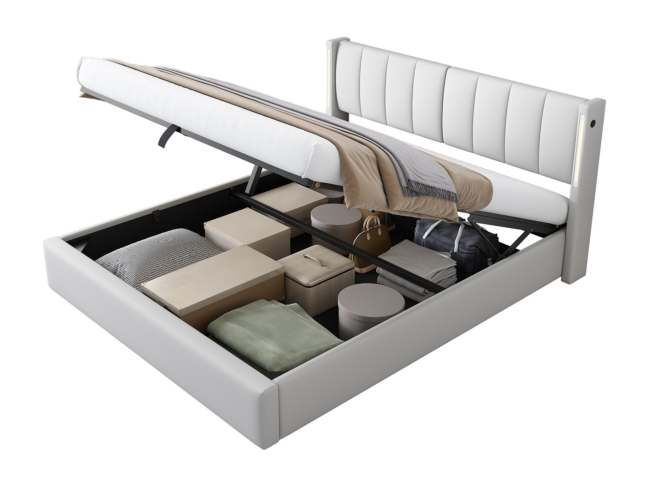 Lit rembourré LED 180 x 200 cm, avec USB rechargeable, éclairage LED et rangement, blanc