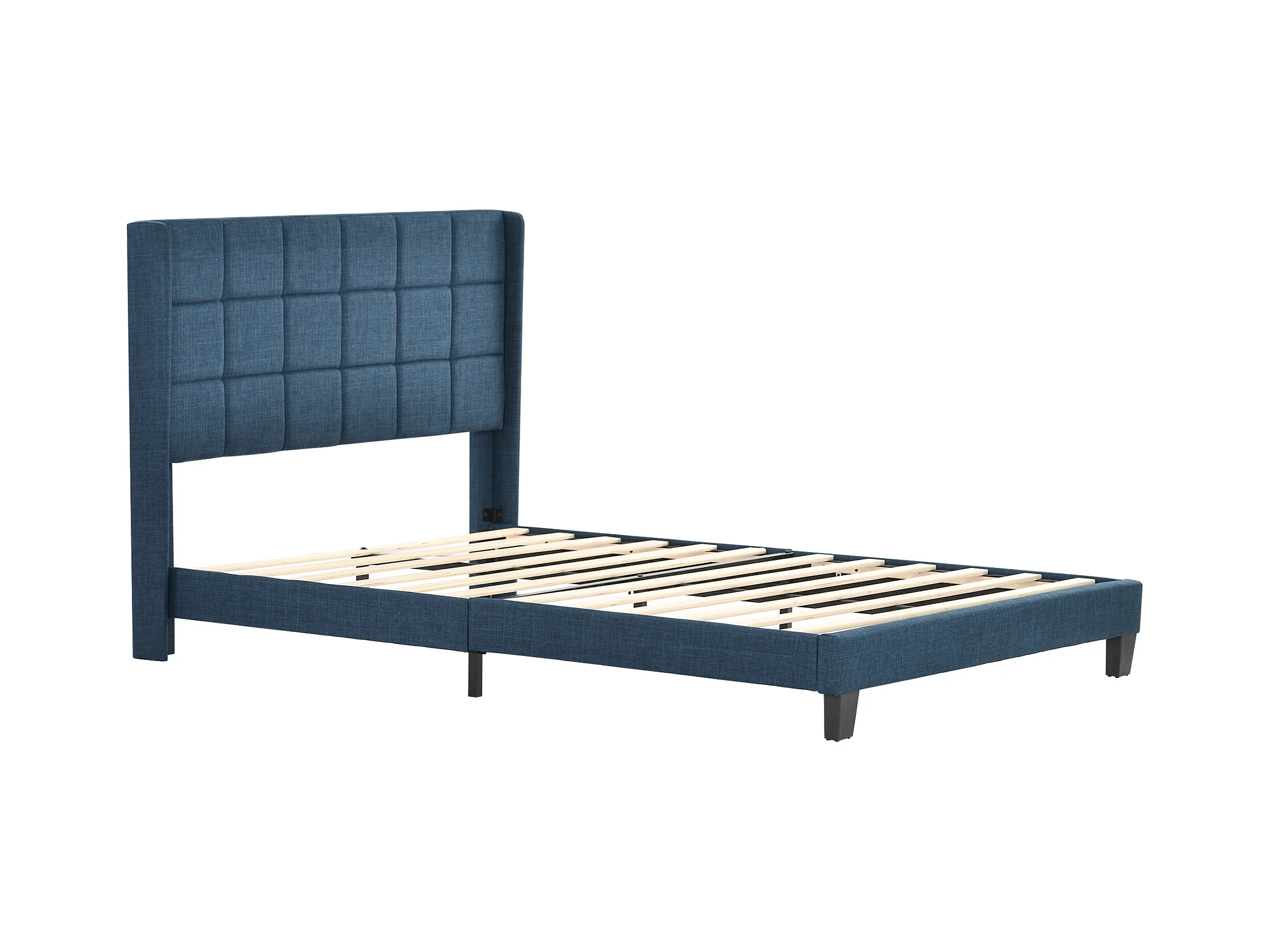 Lit adulte 140x200 cm lit double avec sommier à lattes - tissu en lin Bleu - sans matelas