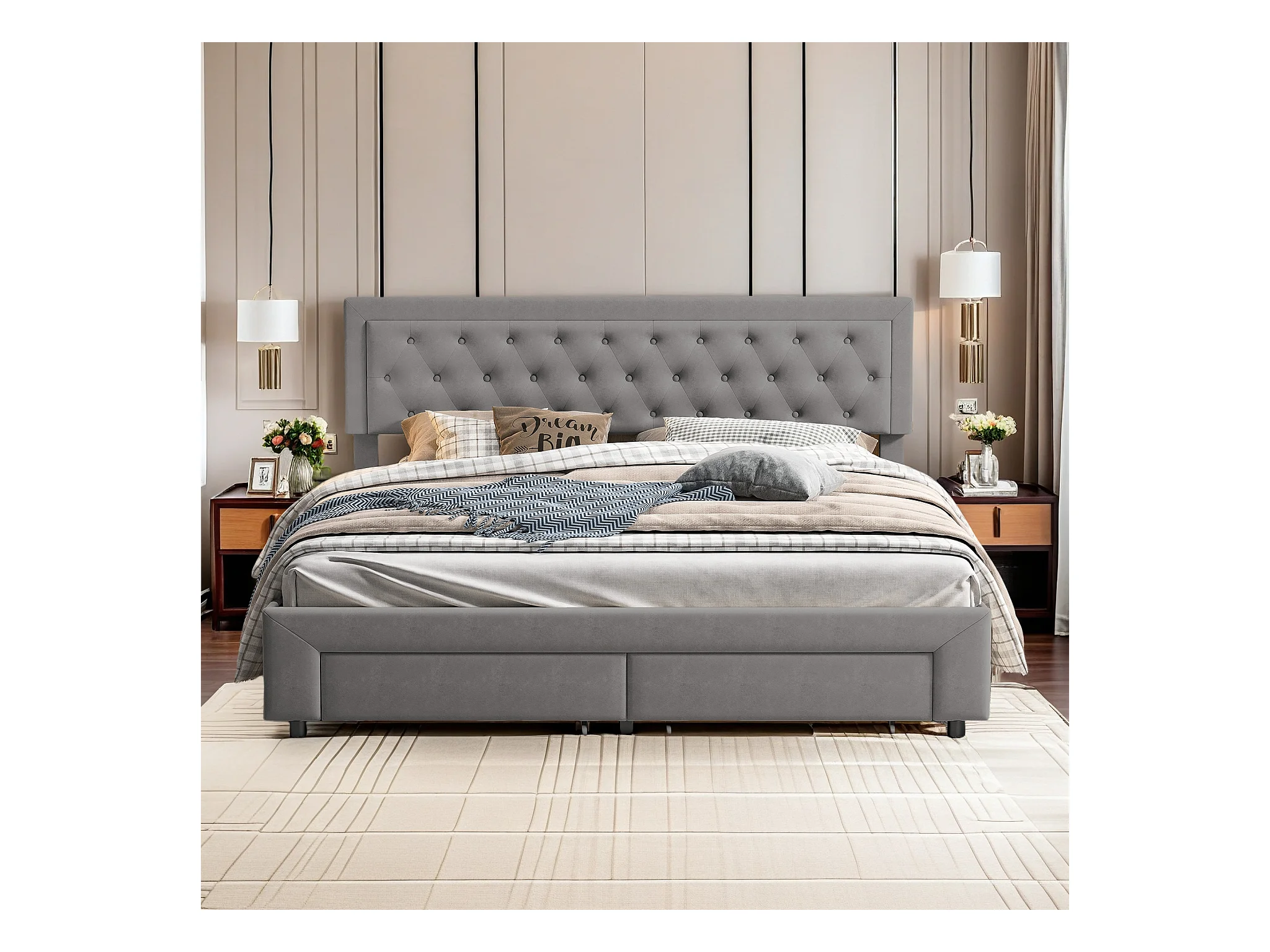 Lit rembourré, lit double, 160 x 200 cm, cadre de lit, lit double, lit de rangement, velours, gris, sans matelas
