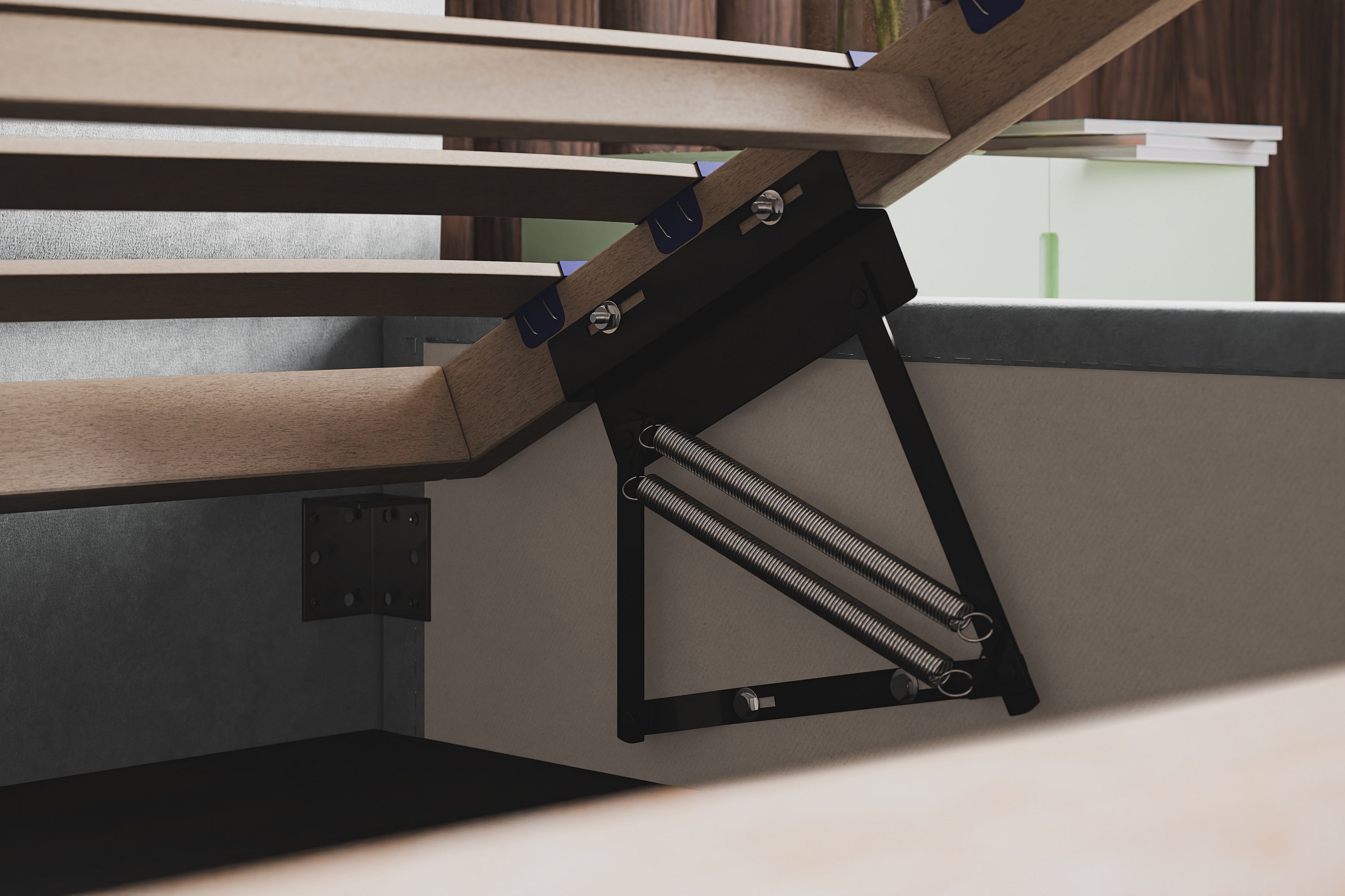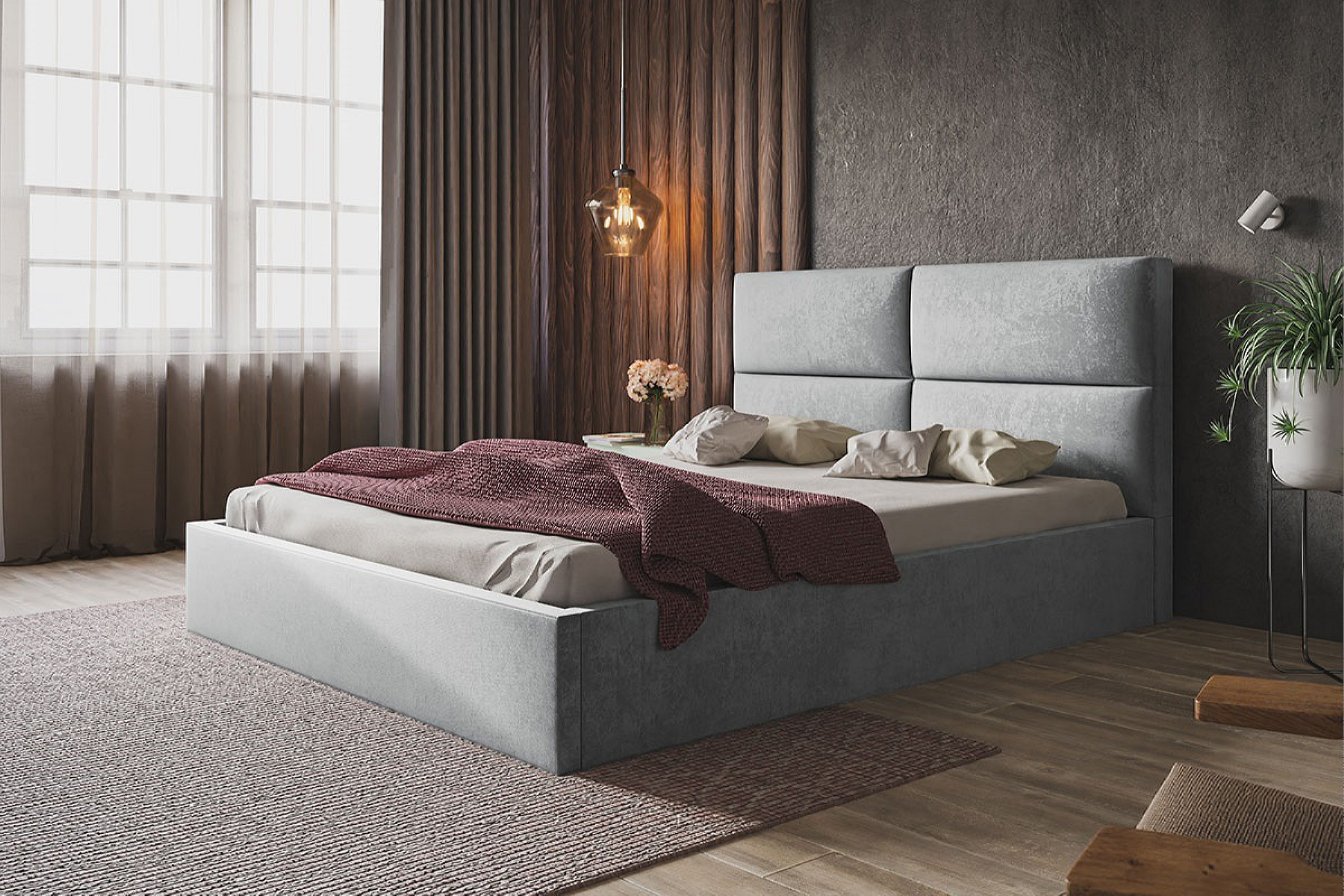 Lit rembourré LIZBONA SLIM avec tête de lit, 180 x 200 cm, lit double avec coffre de rangement et sommier à lattes en bois, couleur : gris, tissu velours