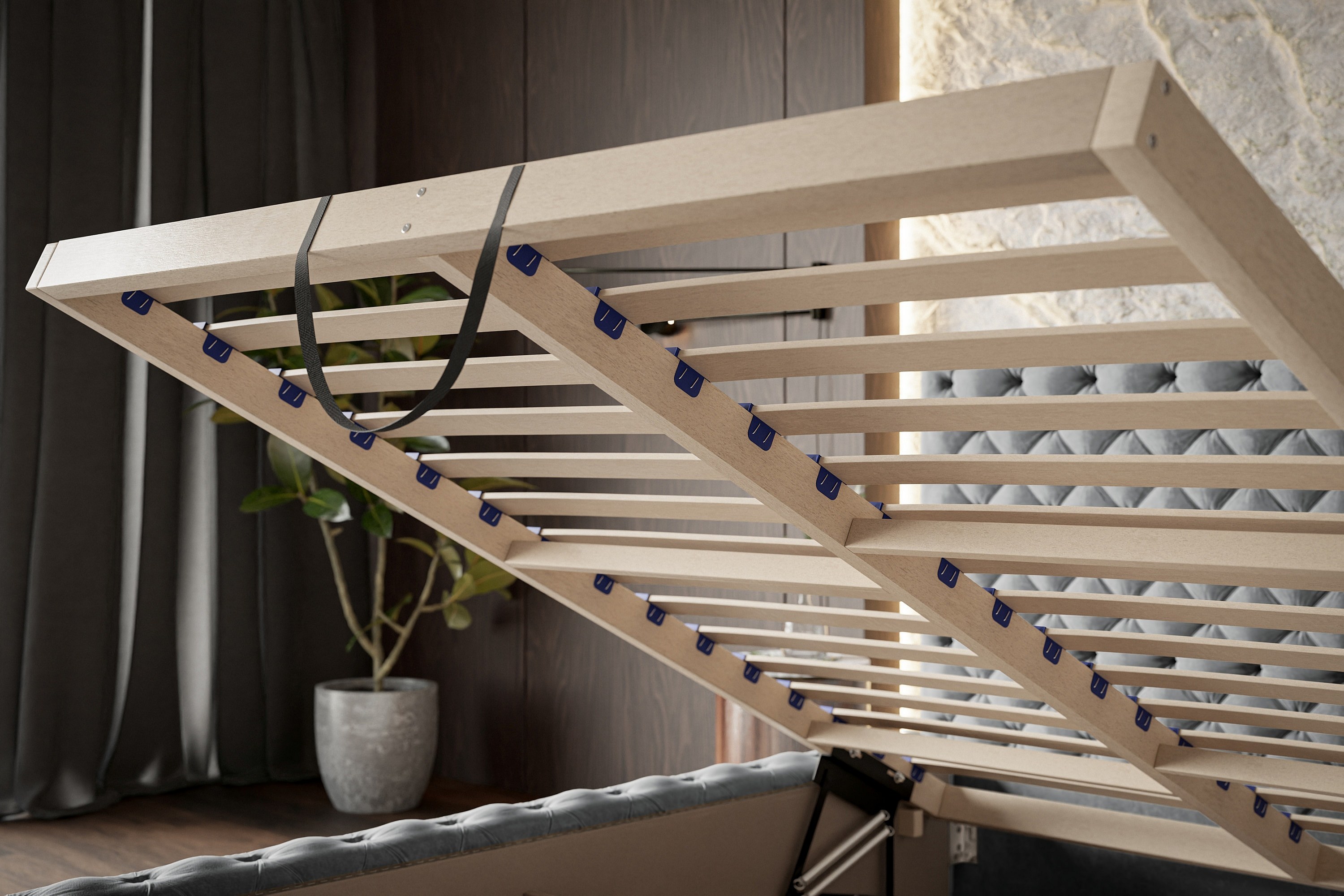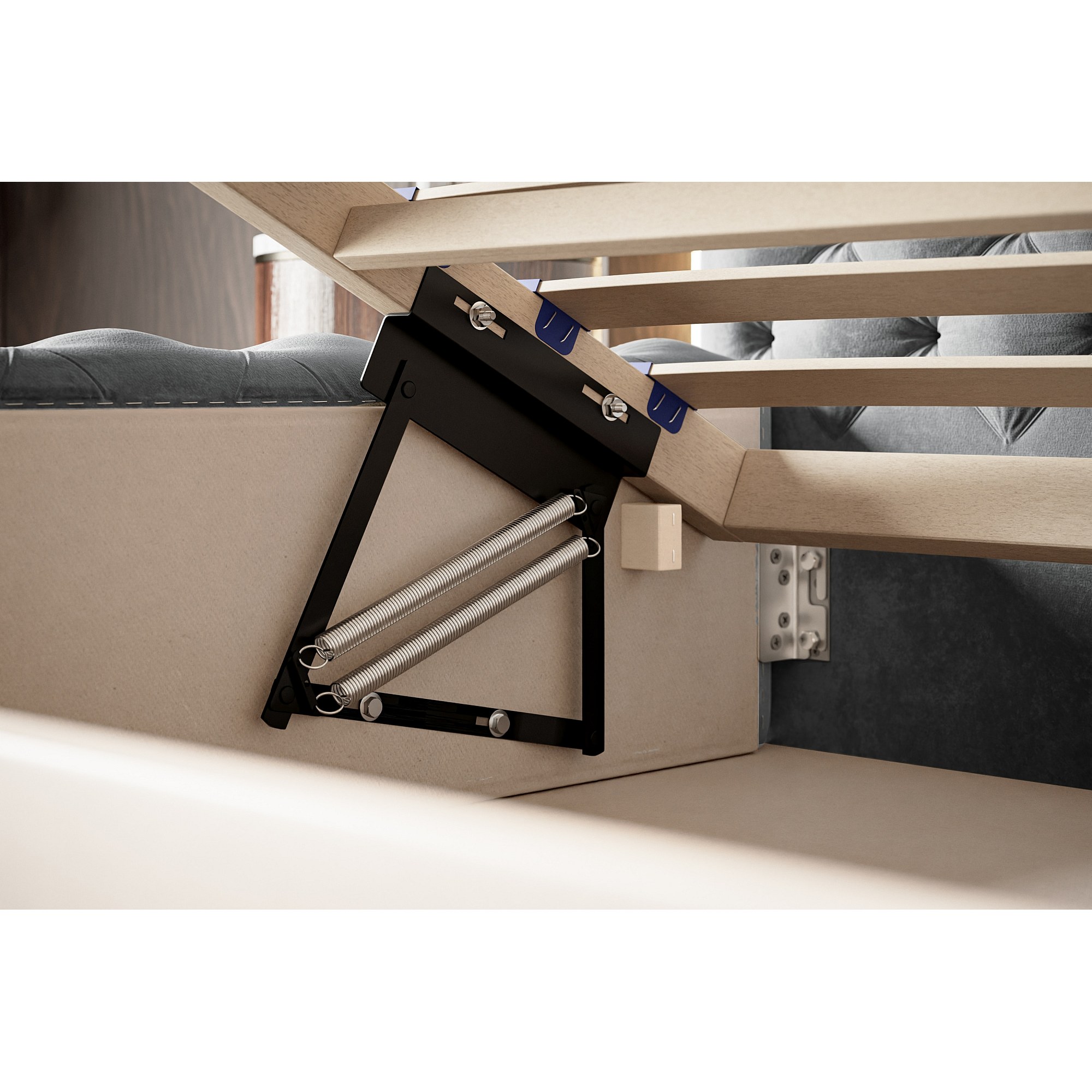 Lit rembourré Miami avec tête de lit, 140x200 cm, lit double avec coffre de rangement et sommier à lattes en bois, tissu velours, couleur : bleu clair