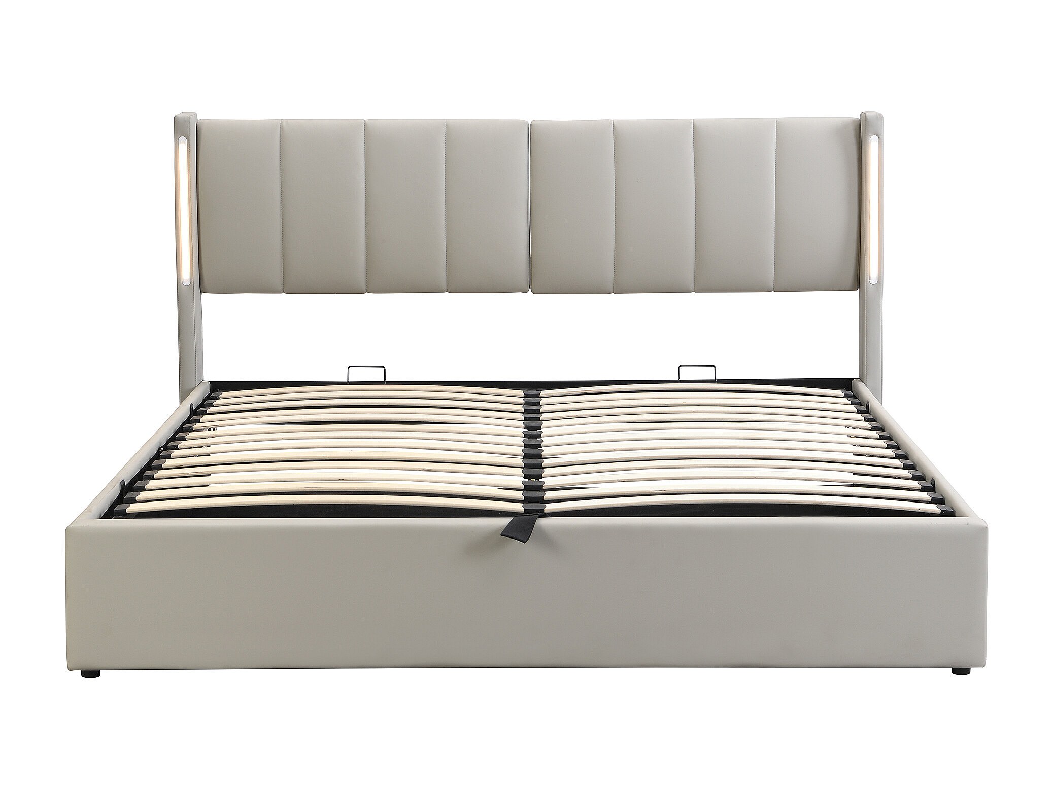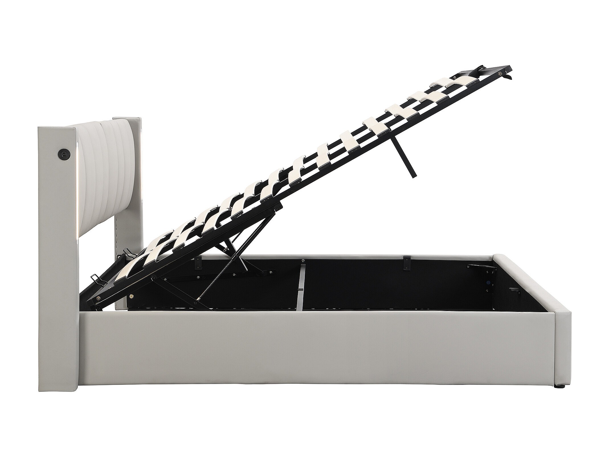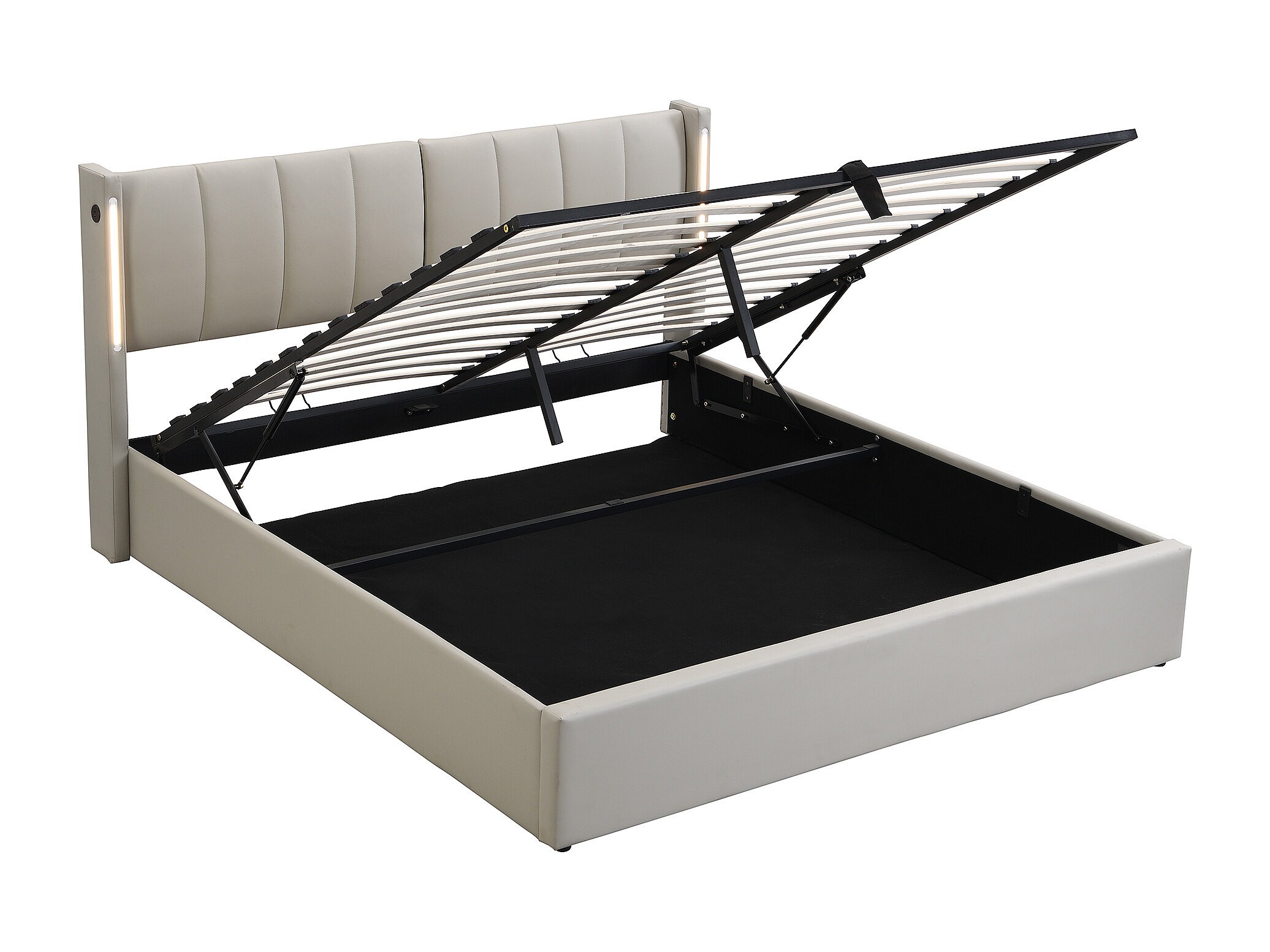 Lit rembourré multifonctionnel 140 x 190 cm, gris, avec éclairage LED et port USB