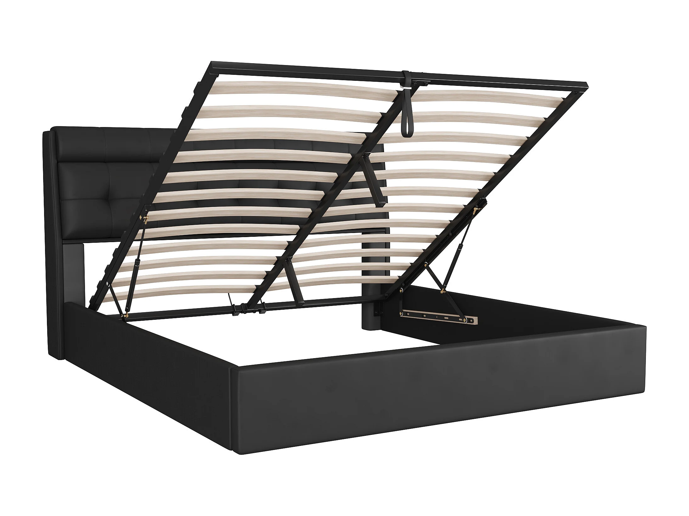 Lit rembourré noir 160 * 200, support de tête de lit caché, support de boîte de lit, pu, avec cadre à lattes et tête de lit, sans matelas