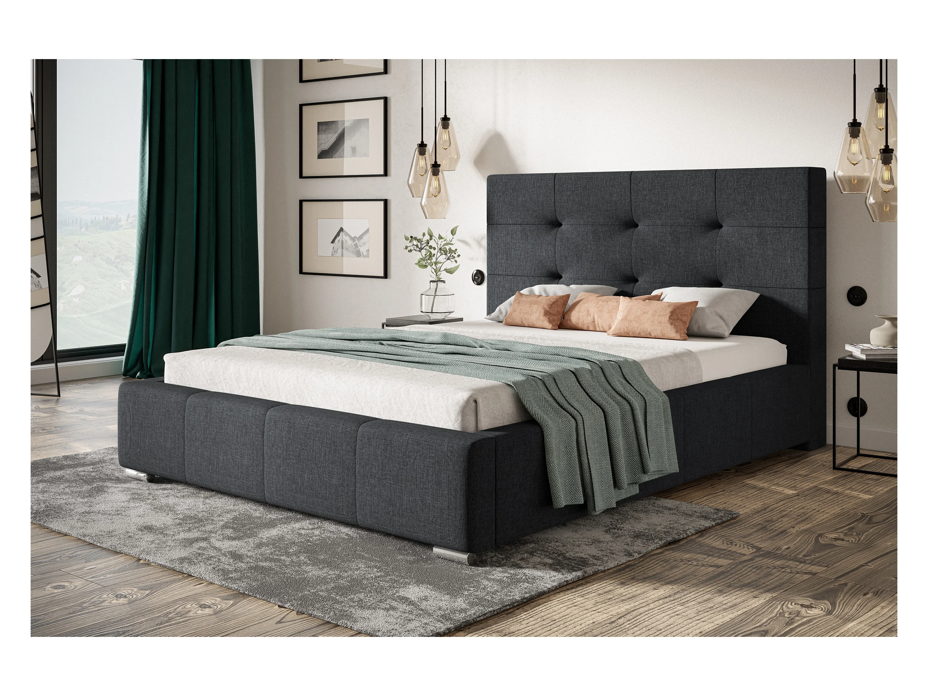 Lit rembourré Oslo avec tête de lit, 160x200 cm, lit double avec coffre de rangement et sommier à lattes en bois, similicuir, couleur : blanc