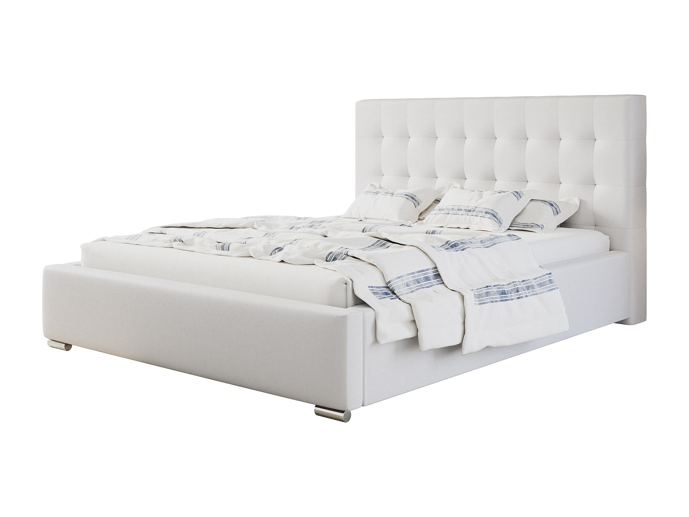 Lit rembourré RIO avec tête de lit, 160x200 cm, lit double avec coffre de rangement et sommier à lattes en bois, similicuir, couleur : blanc