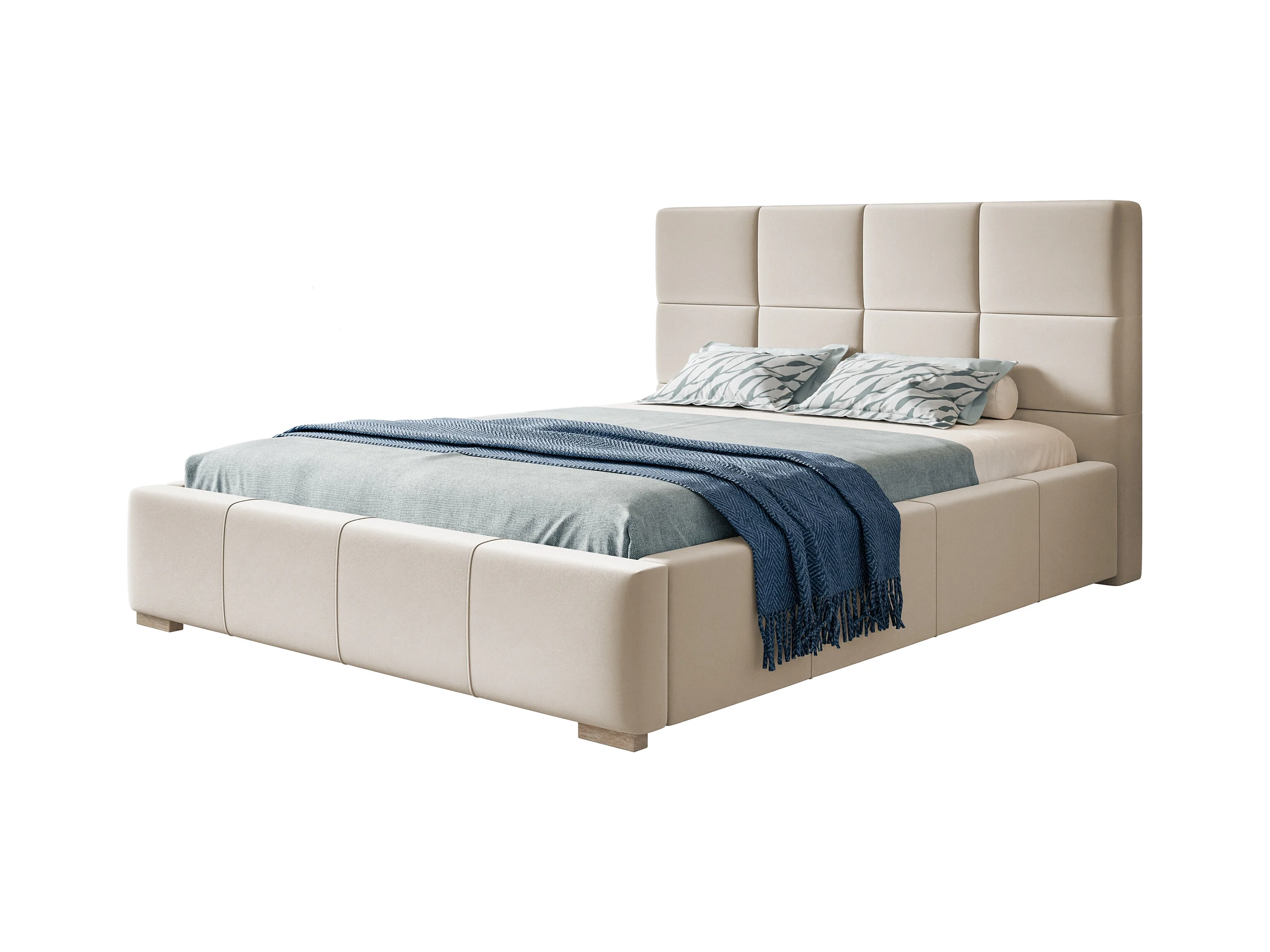 Lit rembourré Rome avec tête de lit, 120x200 cm, lit double avec coffre de rangement et sommier à lattes en bois, tissu velours, couleur : sable