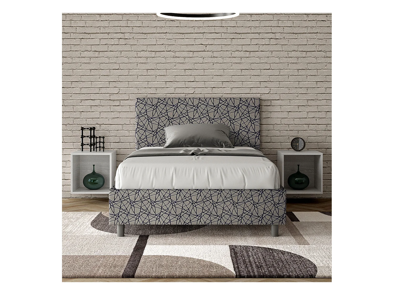 Lit 1 place et demi sans sommier rembourré 120x190 tissu Era 9 bleu Adele