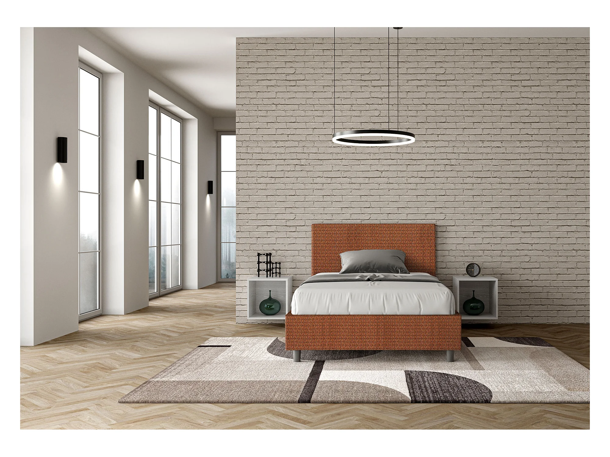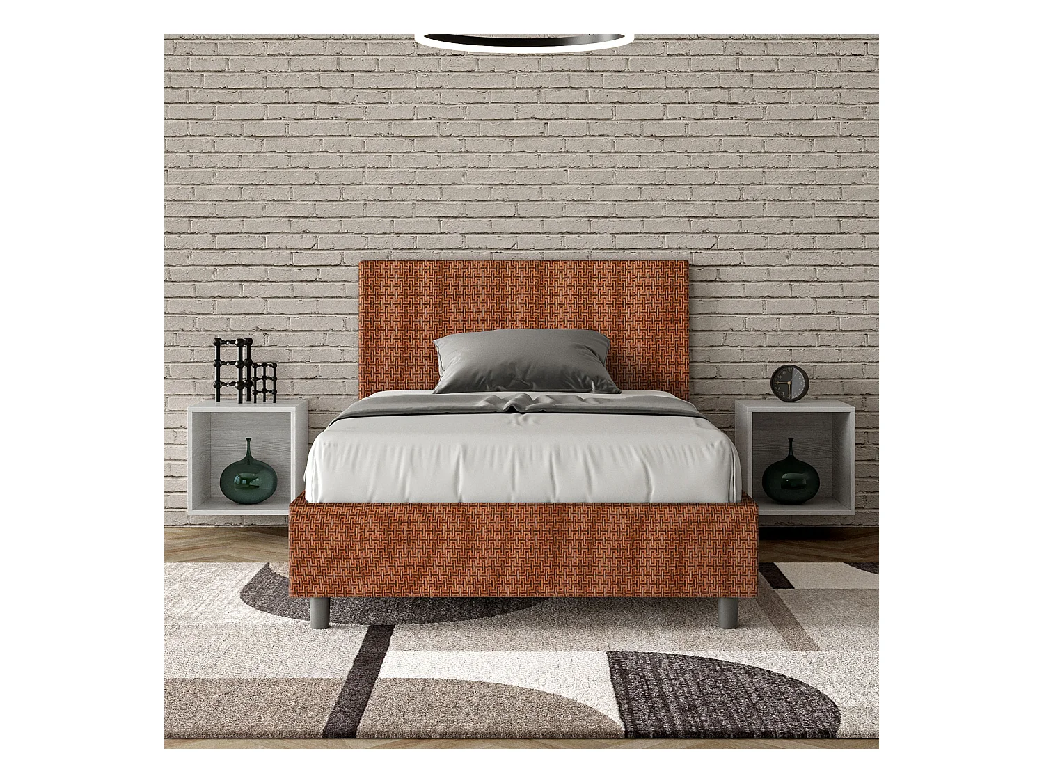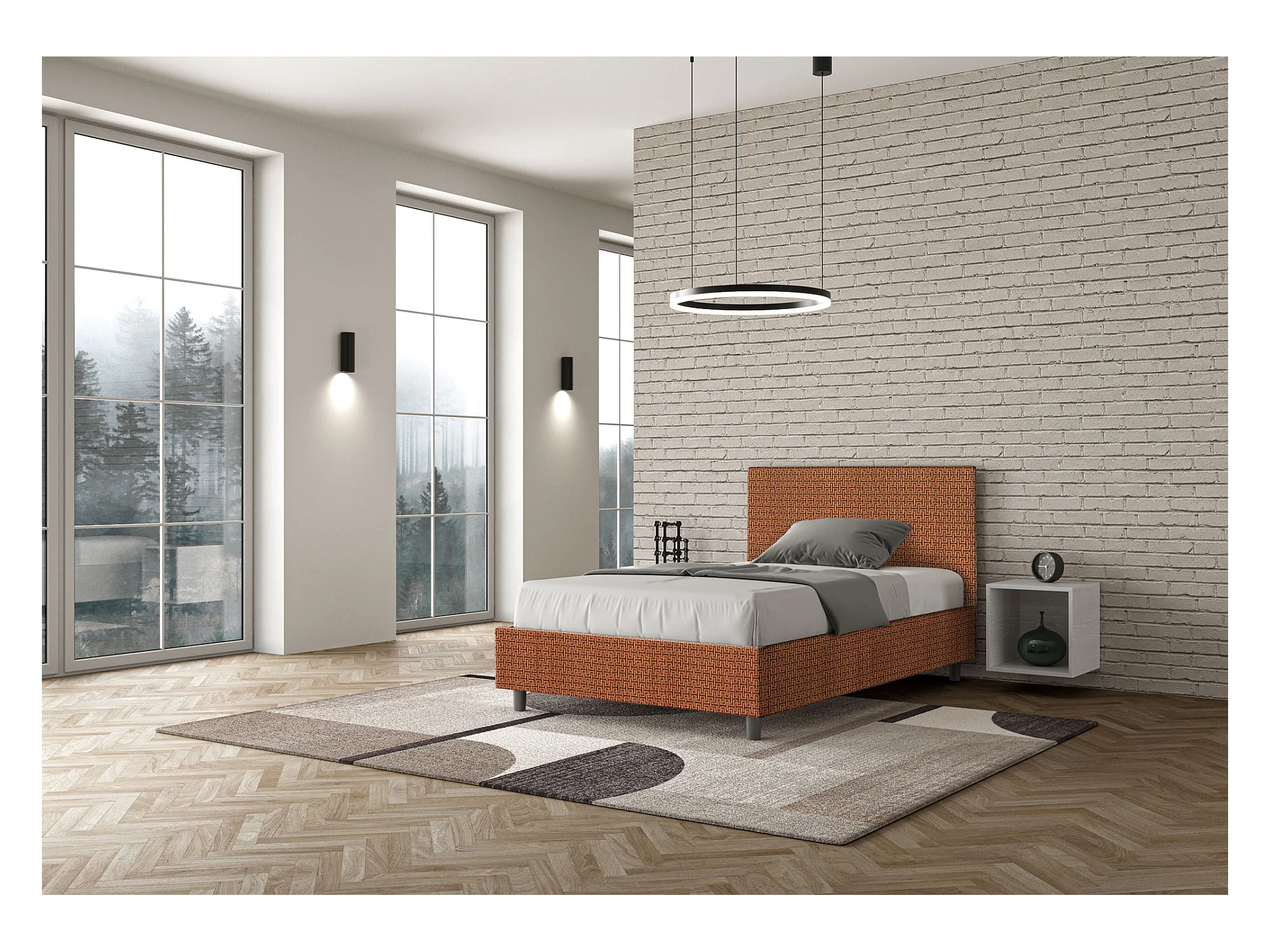 Lit 1 place et demi sans sommier rembourré 120x190 tissu Labirinto 4 orange Adele