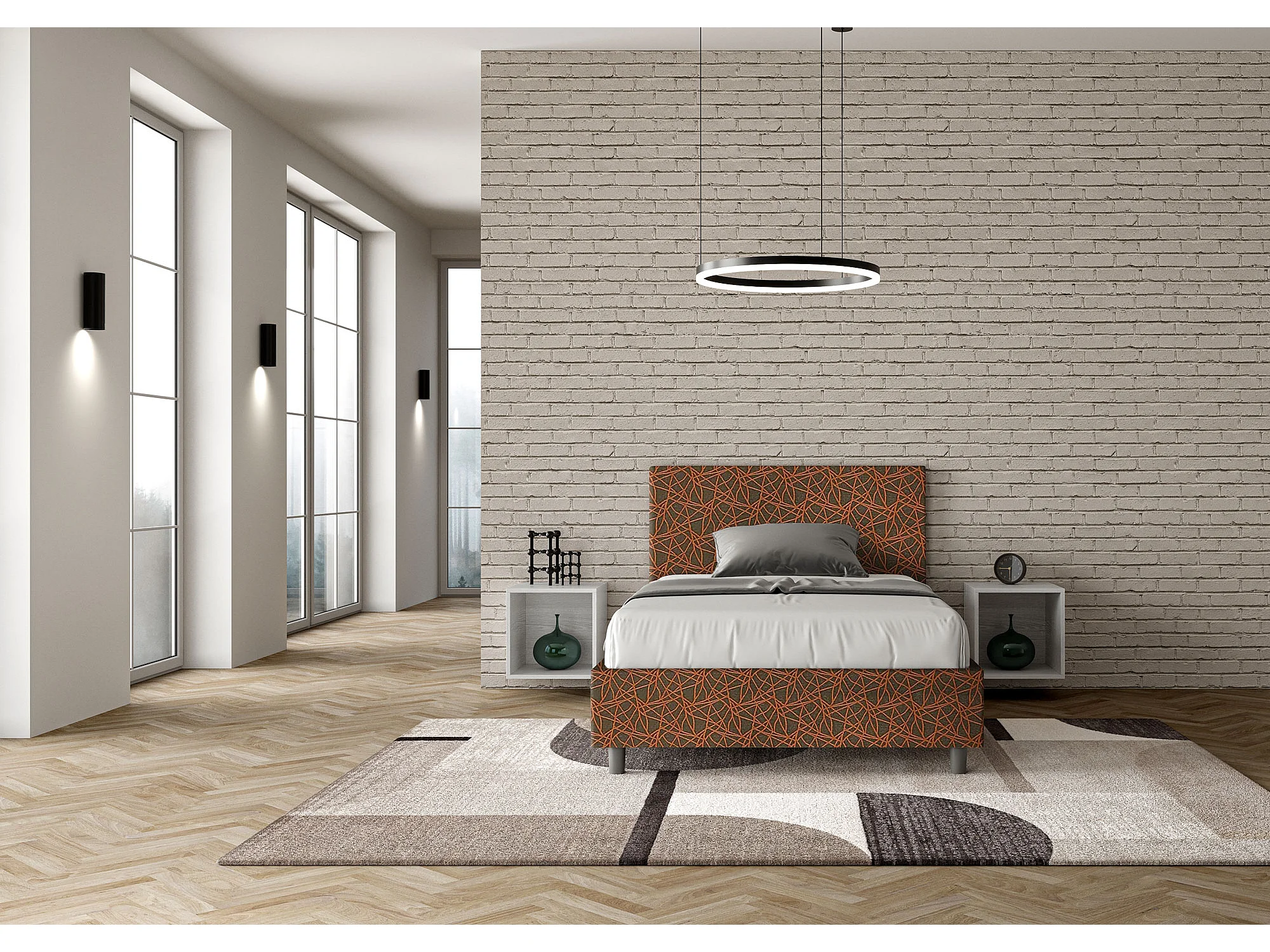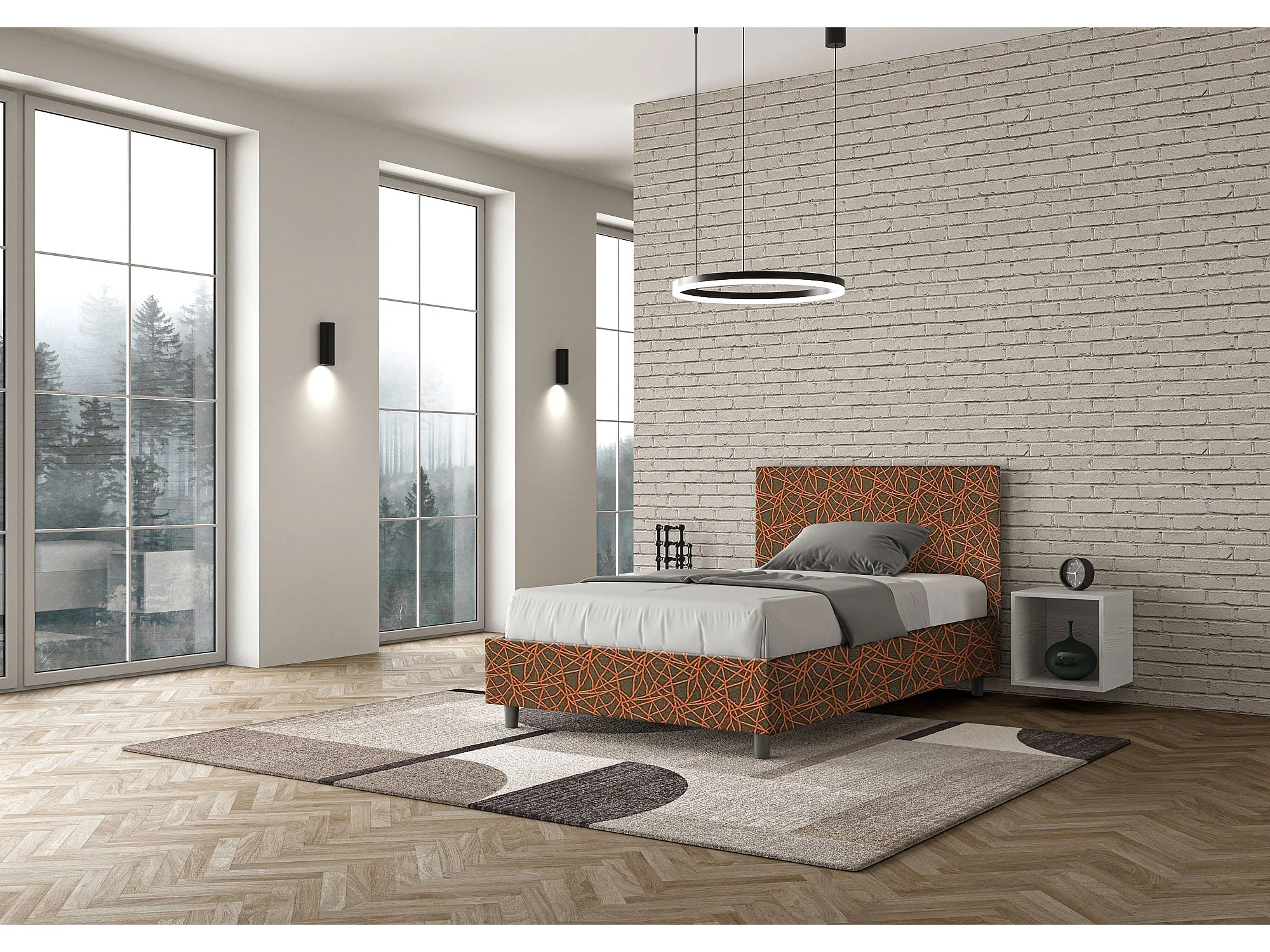 Lit 1 place et demi sans sommier rembourré 120x200 tissu Era 4 orange Adele