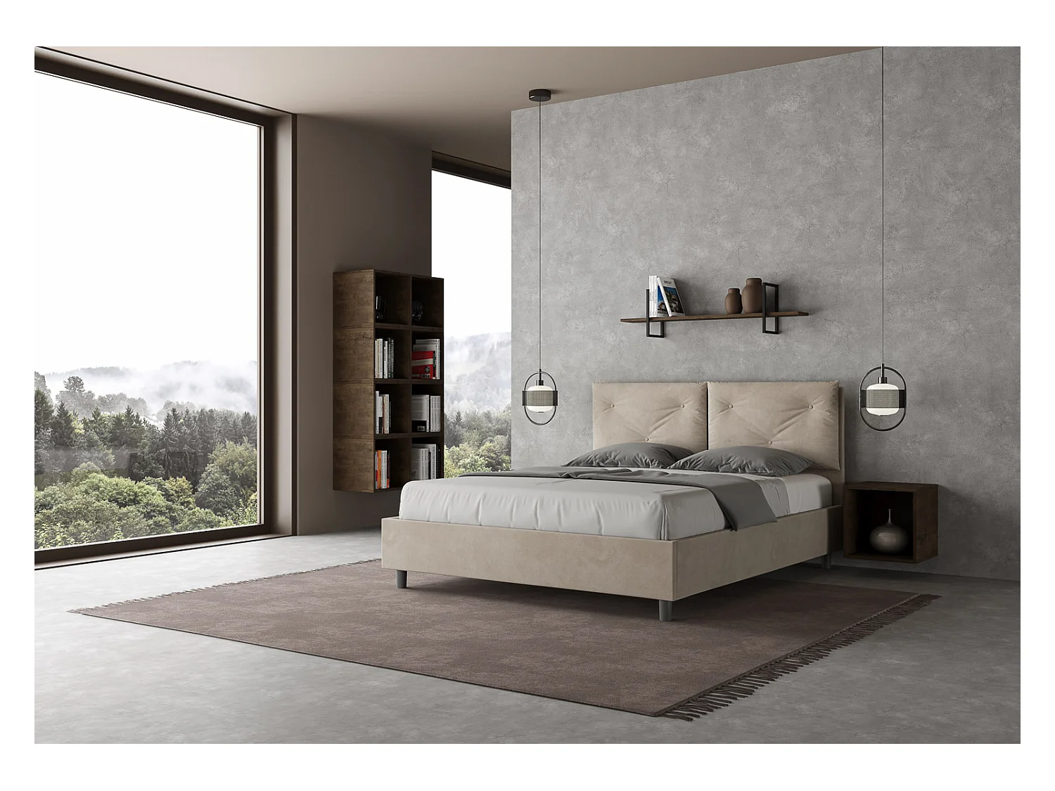 Lit sans sommier rembourré 160x210 microfibre sable Appia