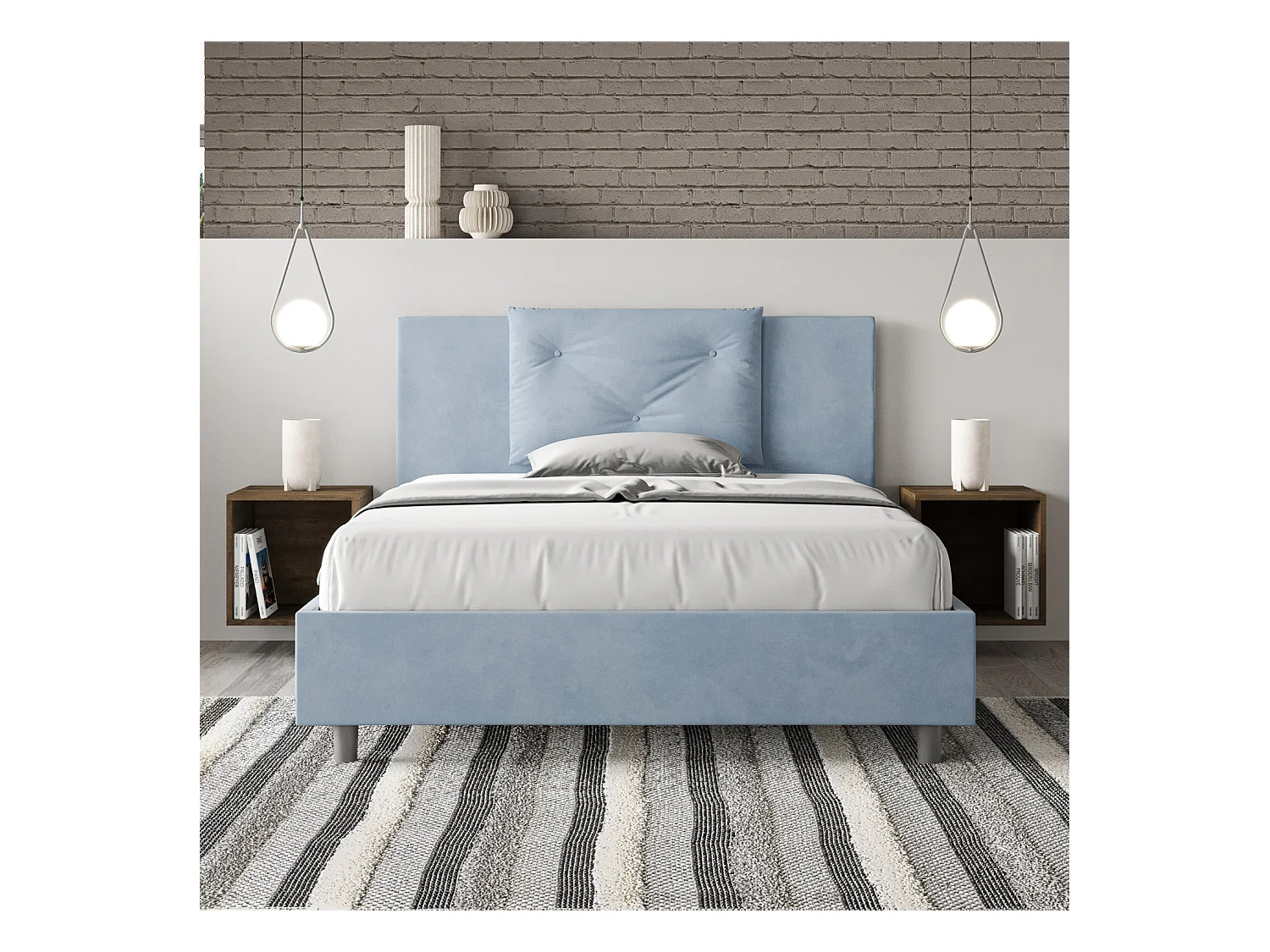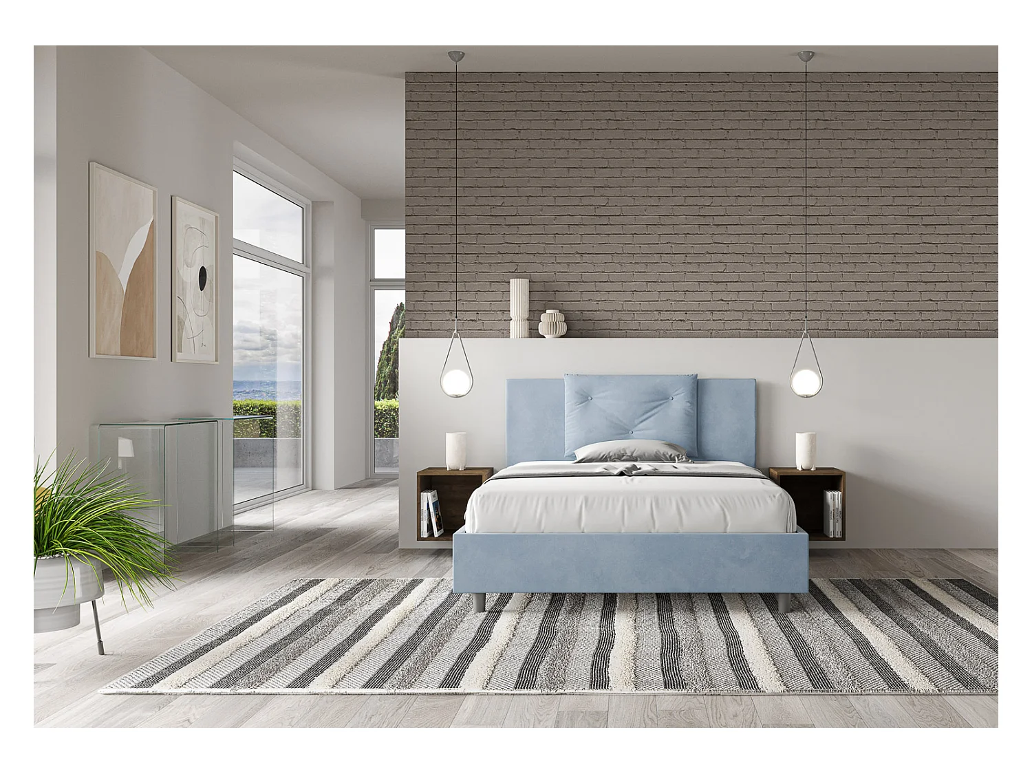 Lit double sans sommier rembourré 140x200 microfibre bleu clair Appia