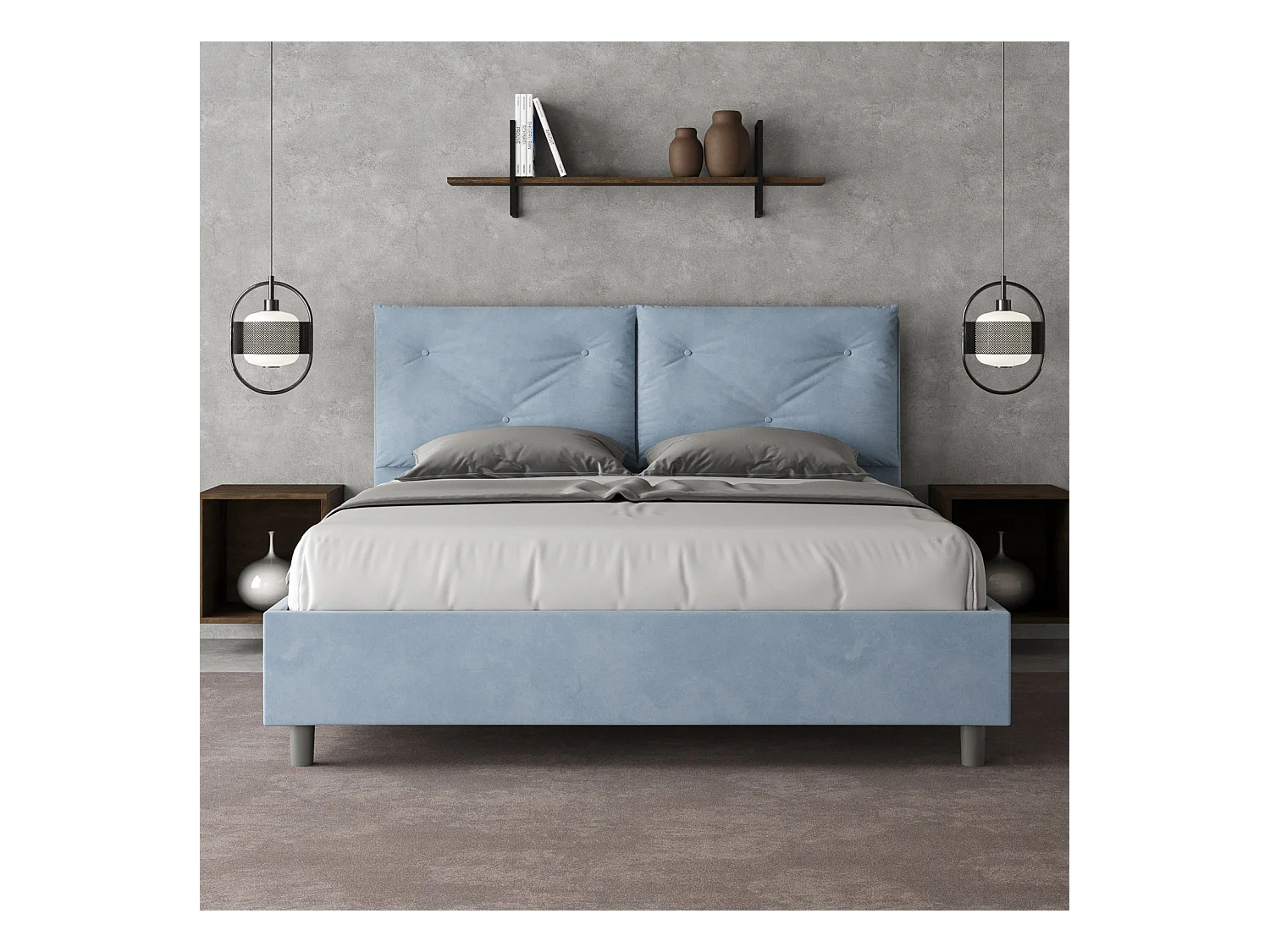 Lit sans sommier rembourré 160x210 microfibre bleu clair Appia