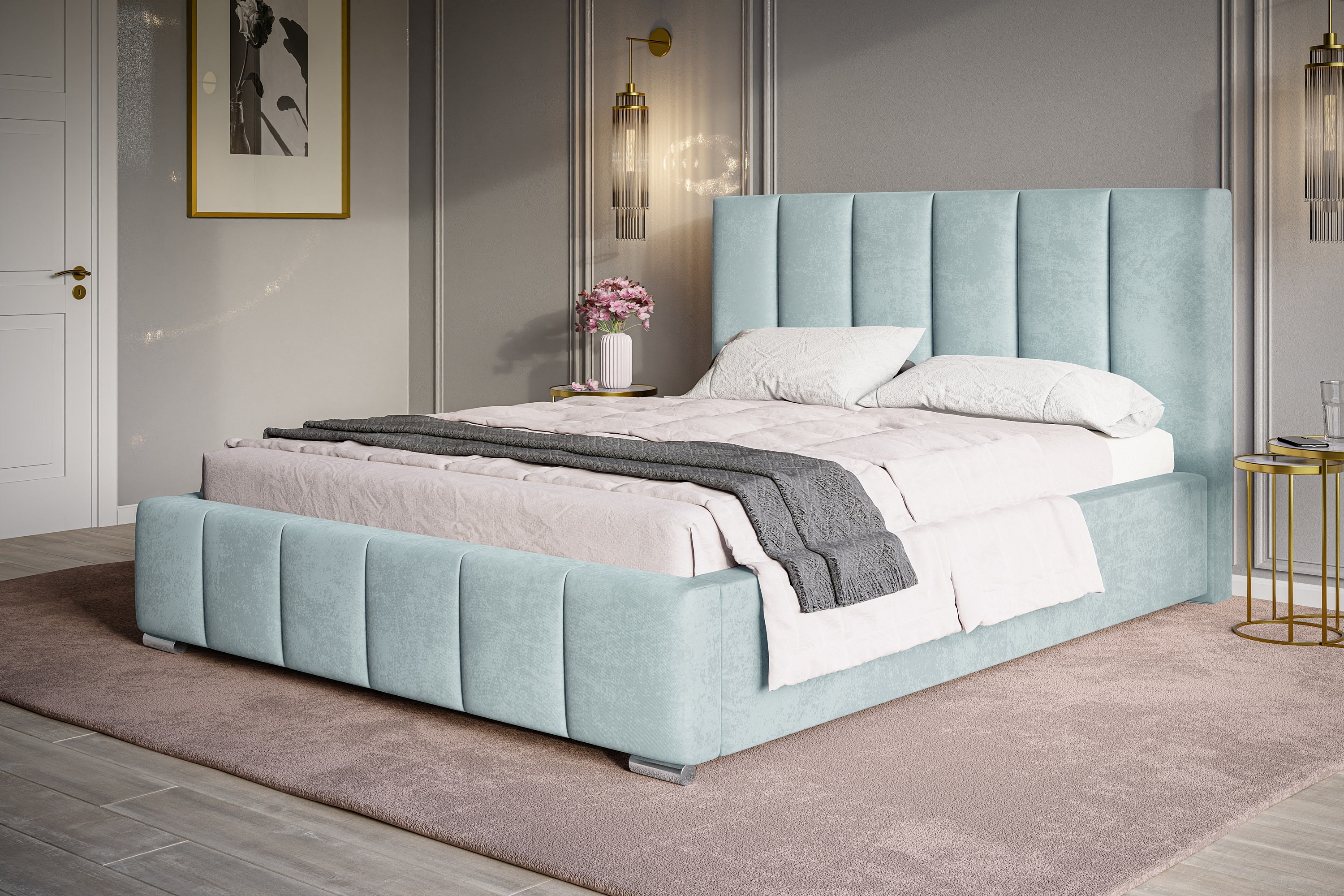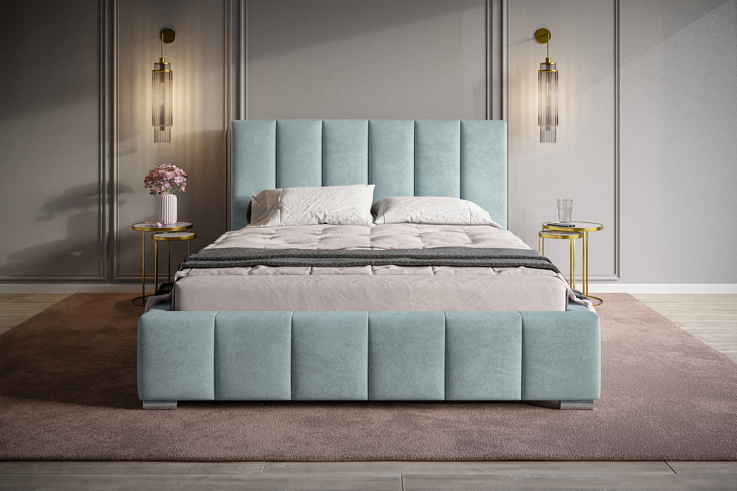 Lit rembourré Tokio avec tête de lit, 120x200 cm, lit double avec coffre de rangement et sommier à lattes en bois, tissu velours, couleur : turquoise