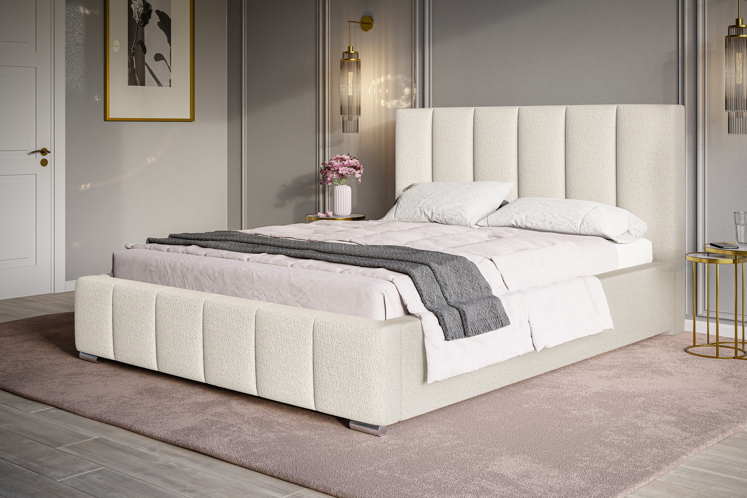 Lit rembourré Tokio avec tête de lit, 160x200 cm, lit double avec coffre de rangement et sommier à lattes en bois, tissu velours, couleur : gris foncé