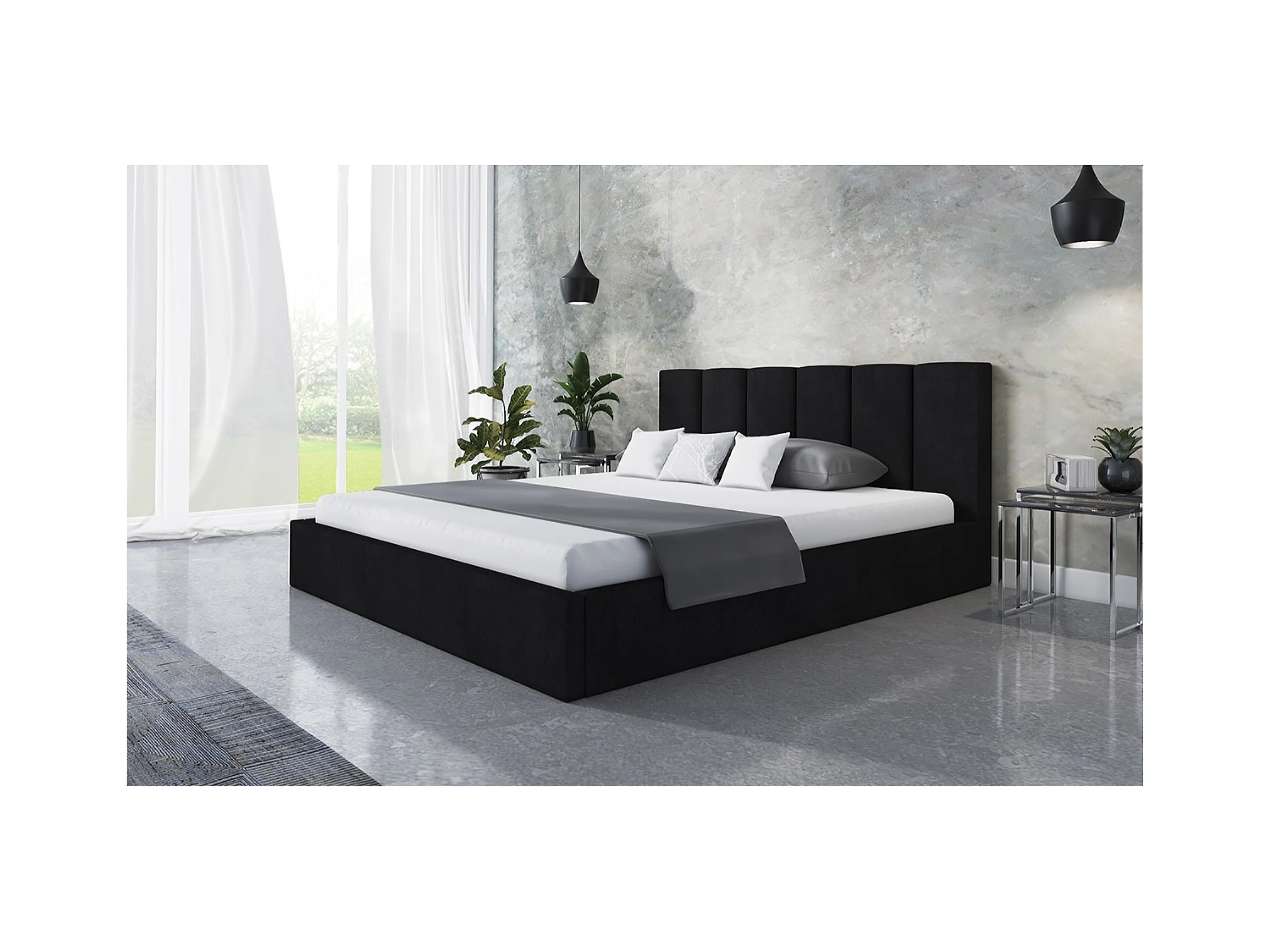 Lit rembourré TOKIO SLIM avec tête de lit, 120 x 200 cm, lit double avec coffre de rangement et sommier à lattes en bois, couleur : noir, tissu velours