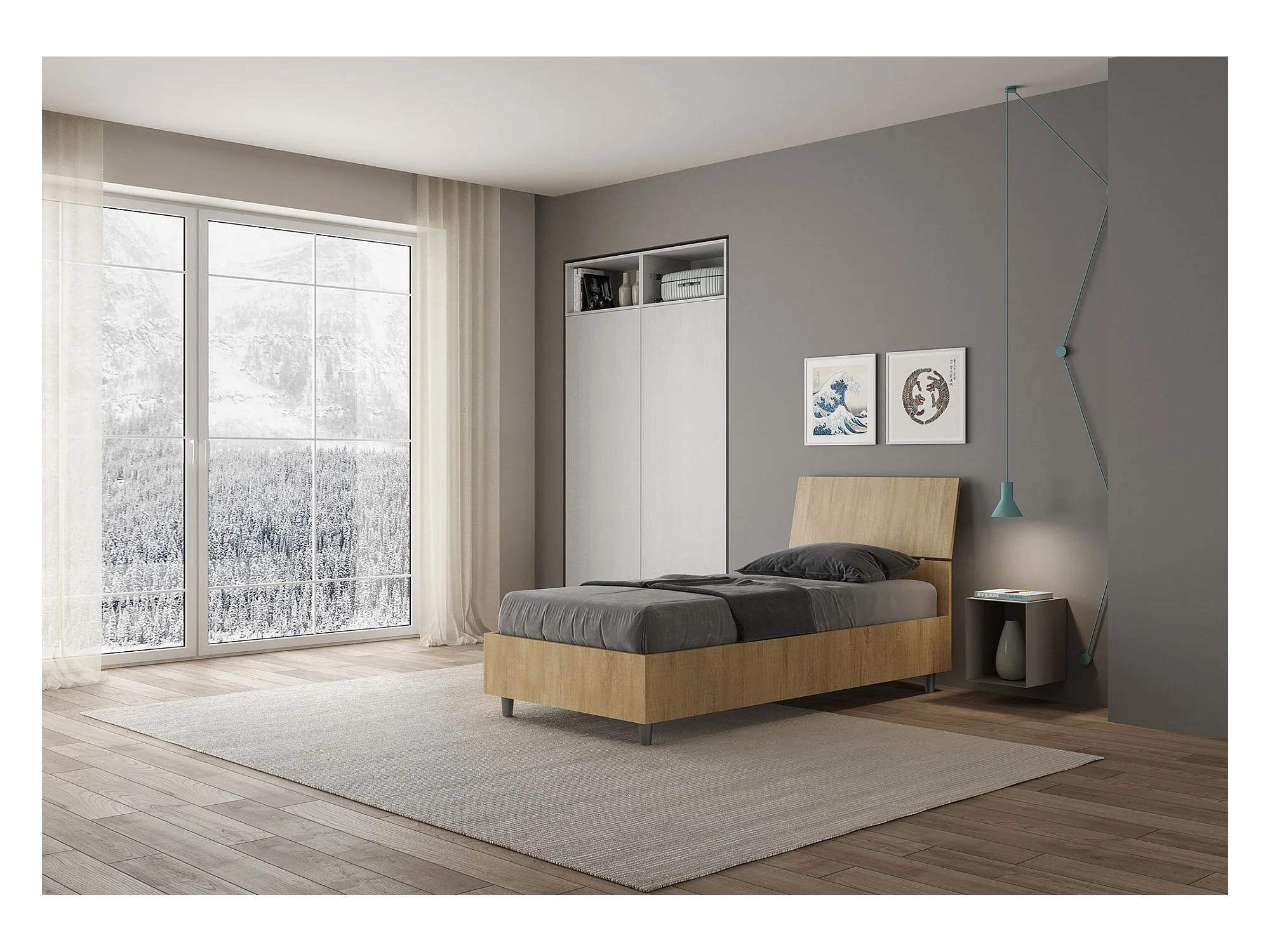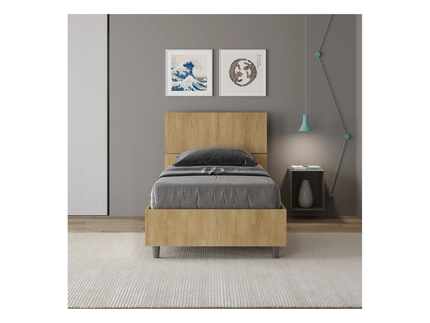 Lit sans sommier 80x200 Tête de lit inclinée Demas chêne