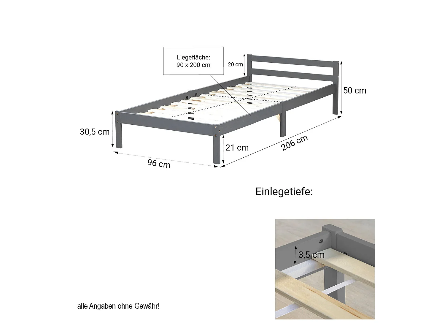 Lit simple 1 personne bois marron 206 x 96 x 50 cm LIT06217