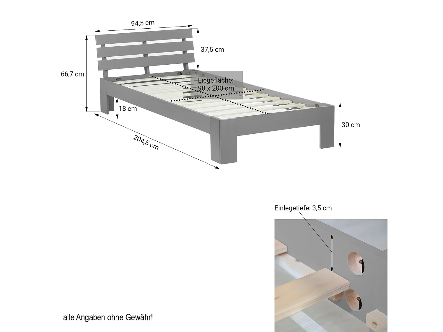 Lit simple 1 personnes bois marron 94.5 x 204.5 x 66.7 cm LIT06207