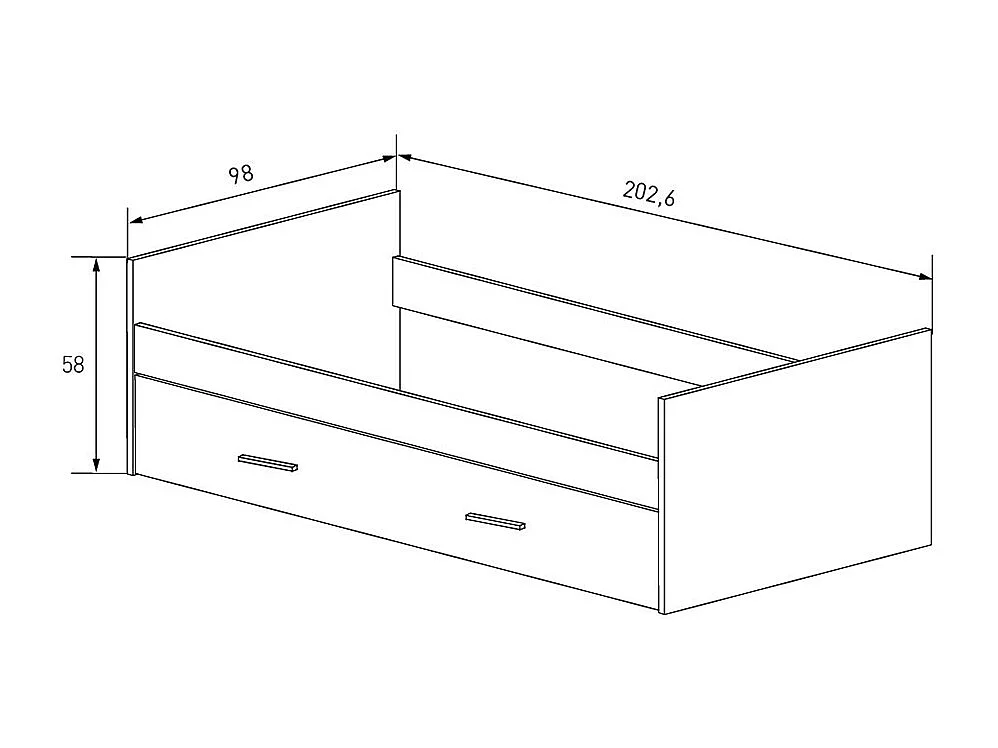 Lit simple 90x190 avec tiroir coloris Beige/chêne Mauvella - Longueur 202,6 x Hauteur 58 x Profondeur 98 cm