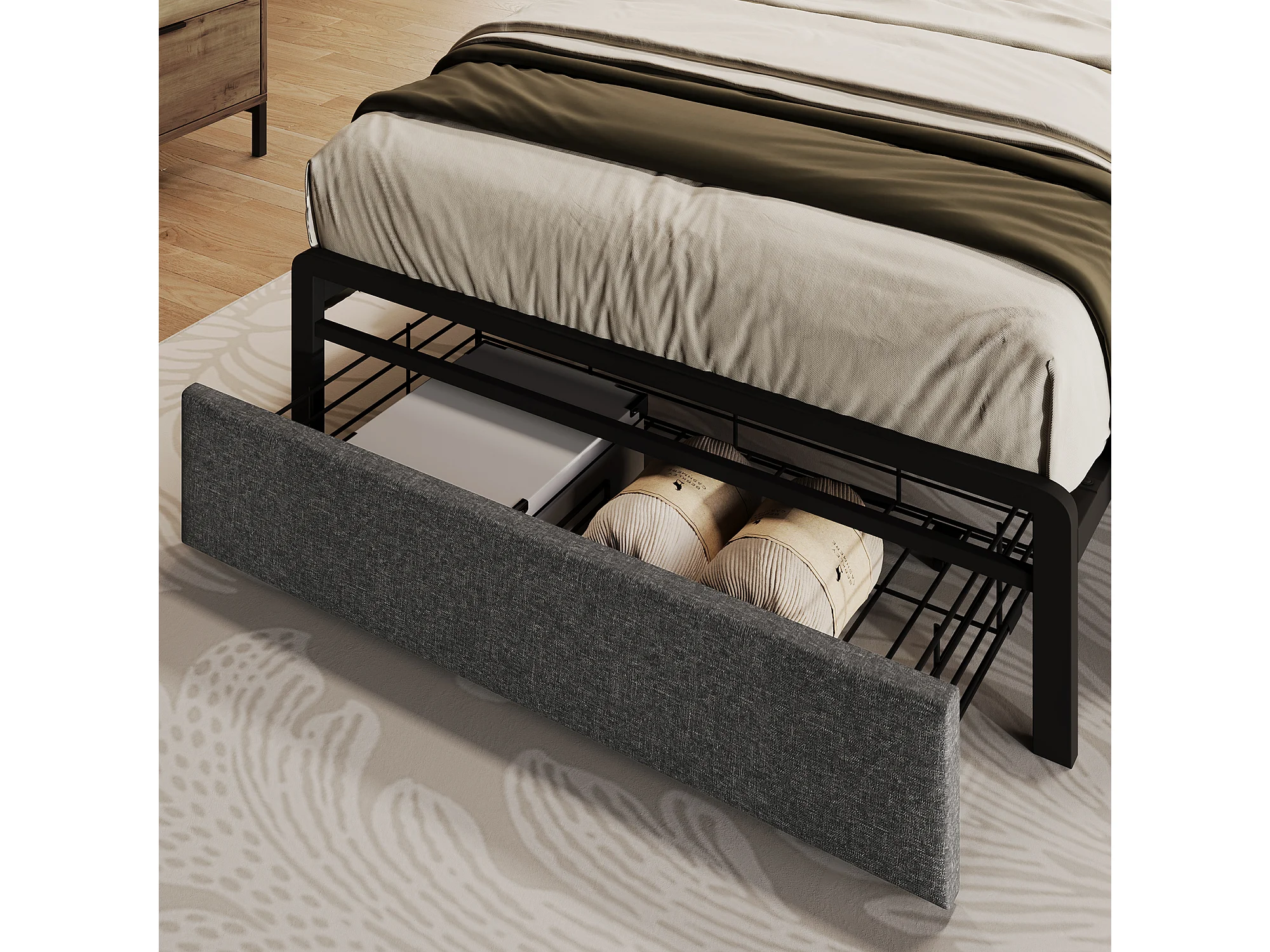 Lit simple 90×200 cm en gris avec tête de lit de rangement, ports USB et éclairage LED