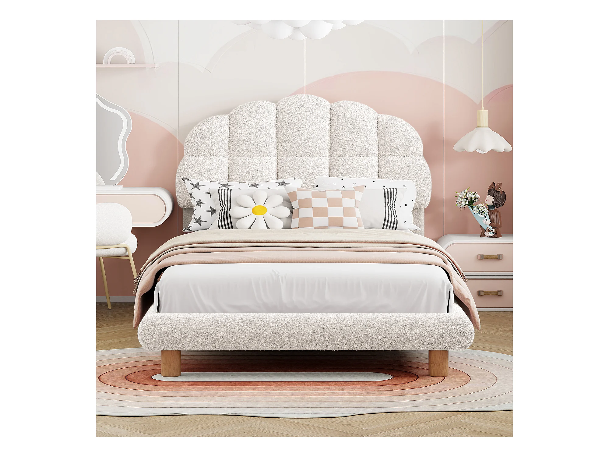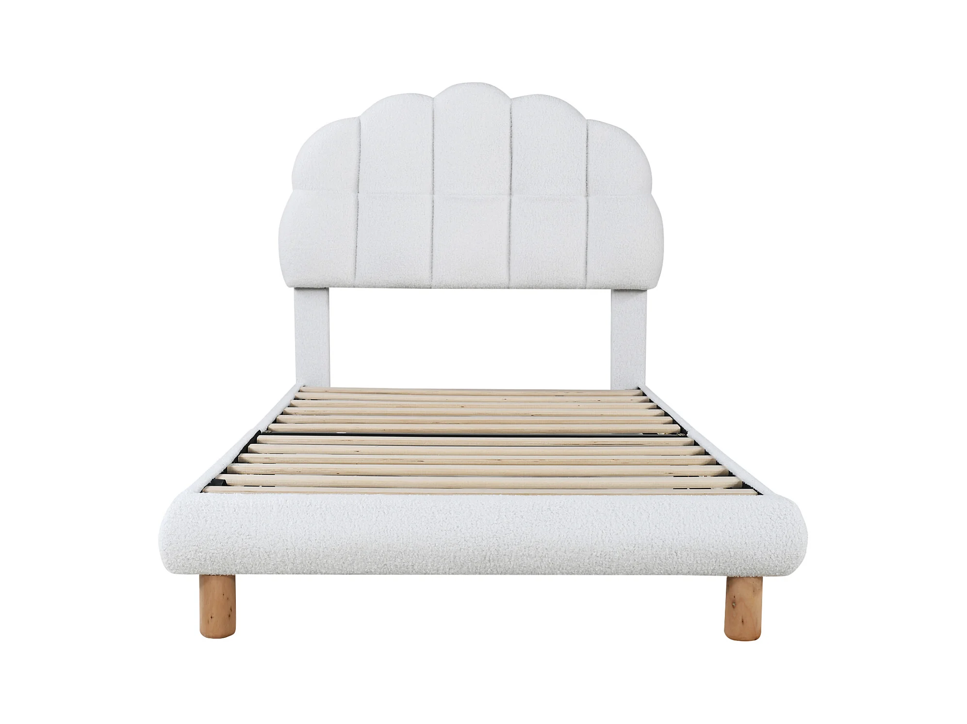 Lit simple 90x200 cm, lit enfant, lit capitonné, sommier à lattes en bois, Velours en laine, blanc