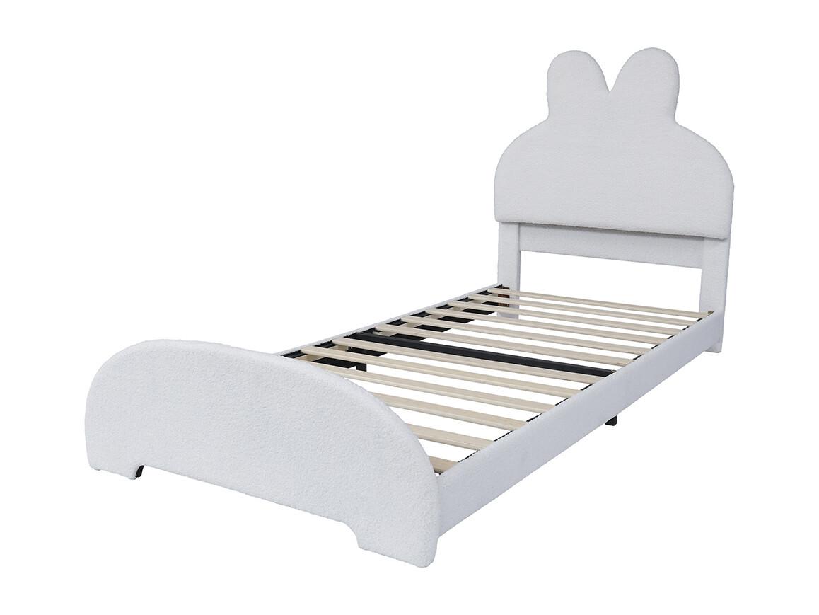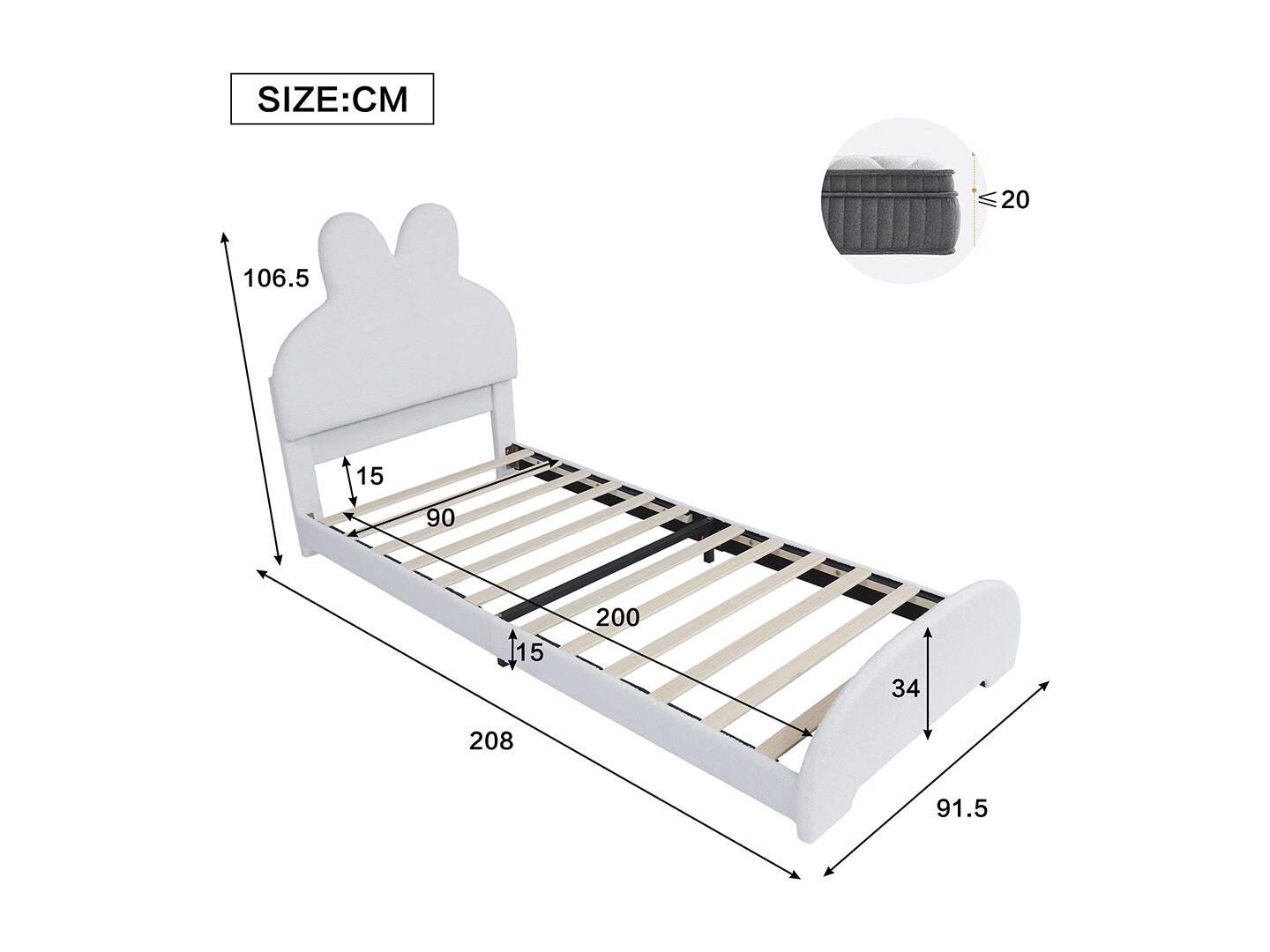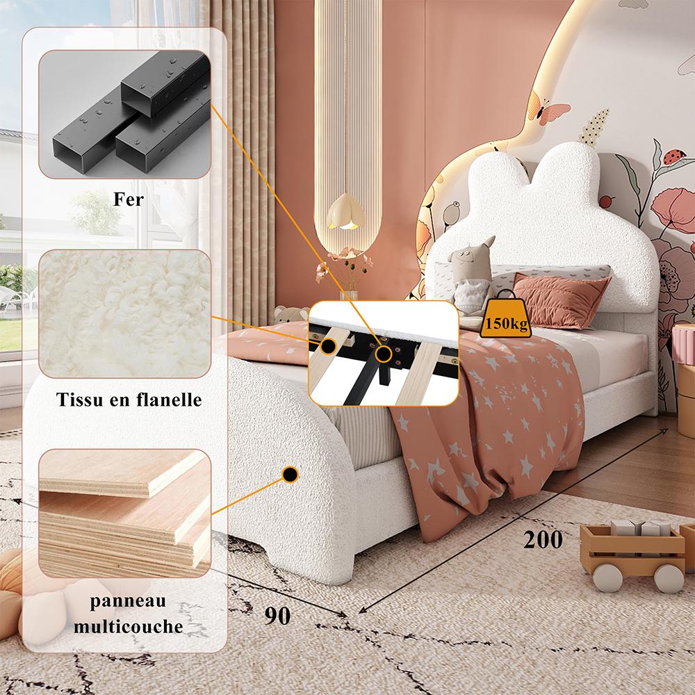 Lit simple 90x200 rembourré tête lapin cartoon polaire blanc