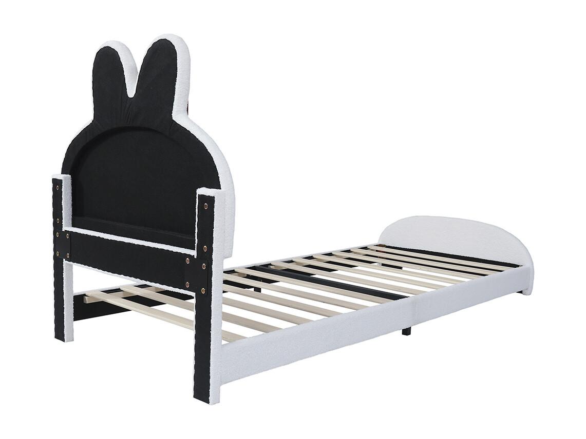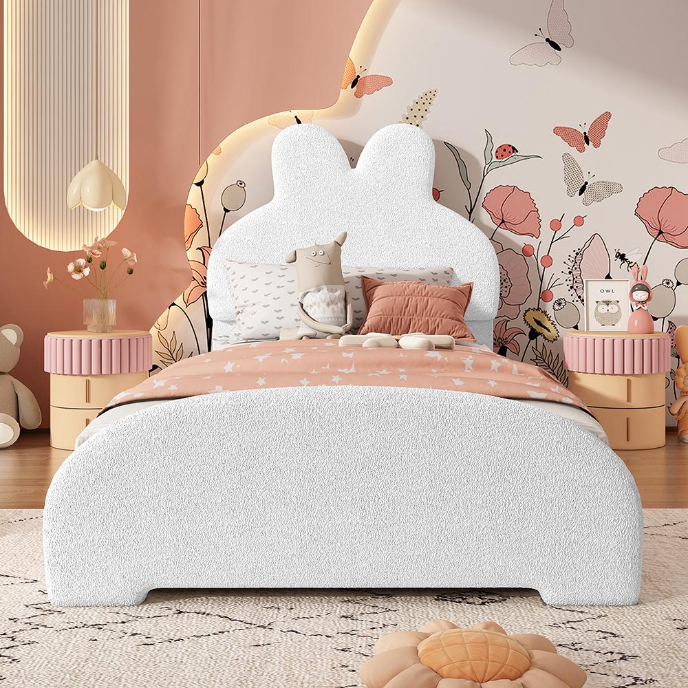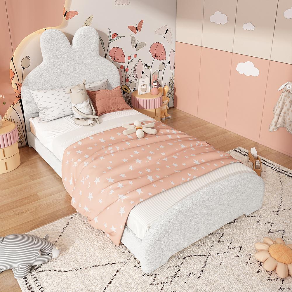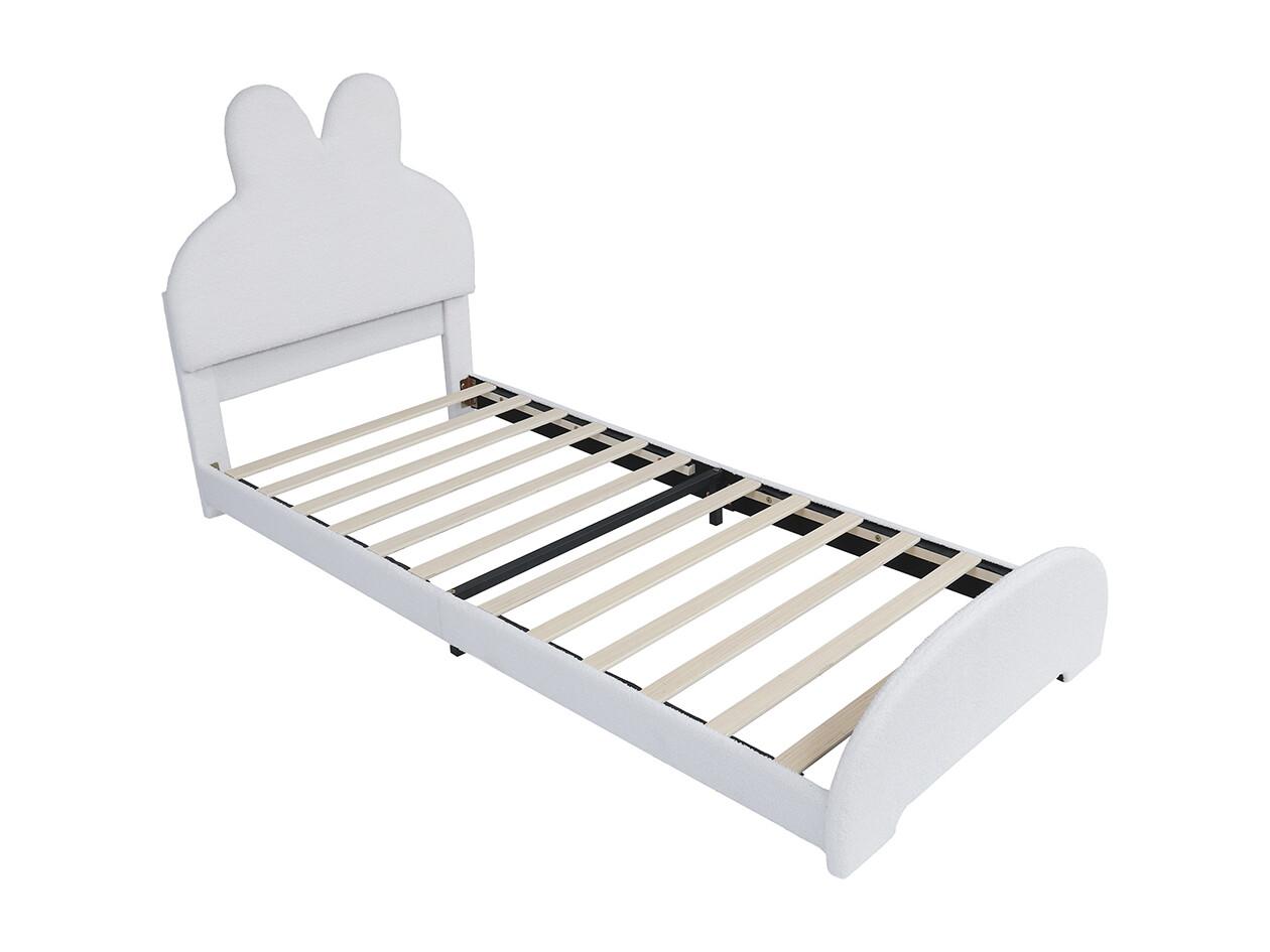 Lit simple 90x200 rembourré tête lapin cartoon polaire blanc