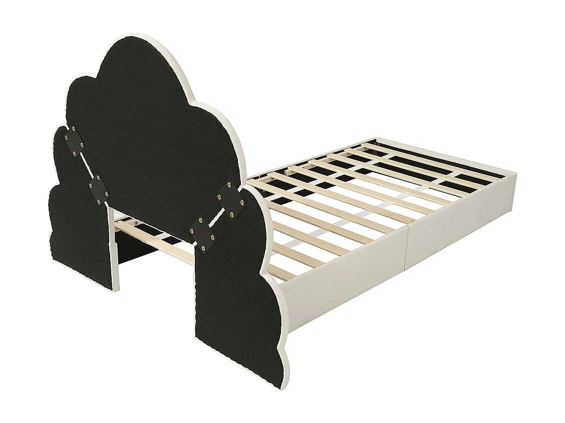 Lit simple 90x200 rembourré tête pétales velours beige
