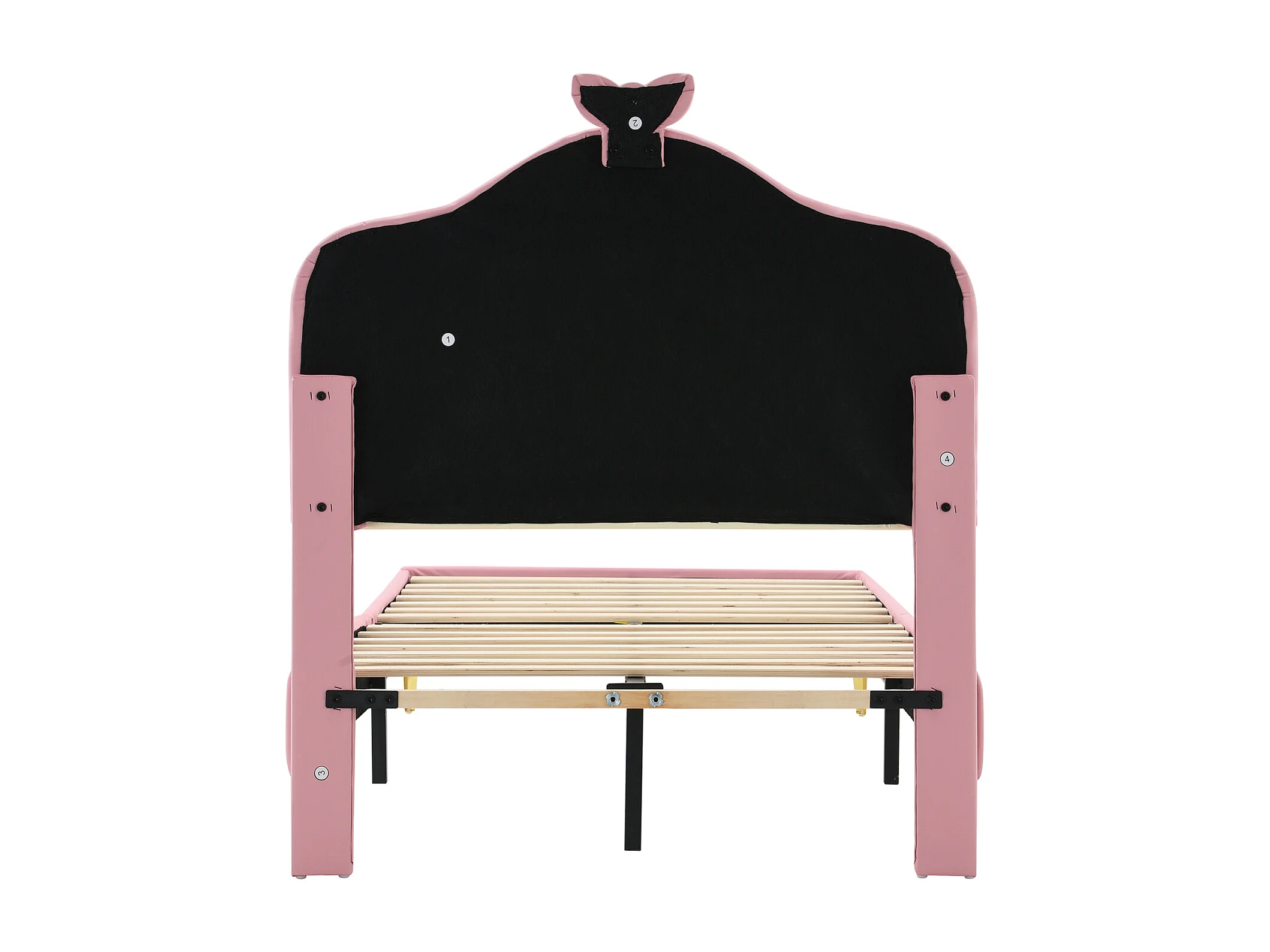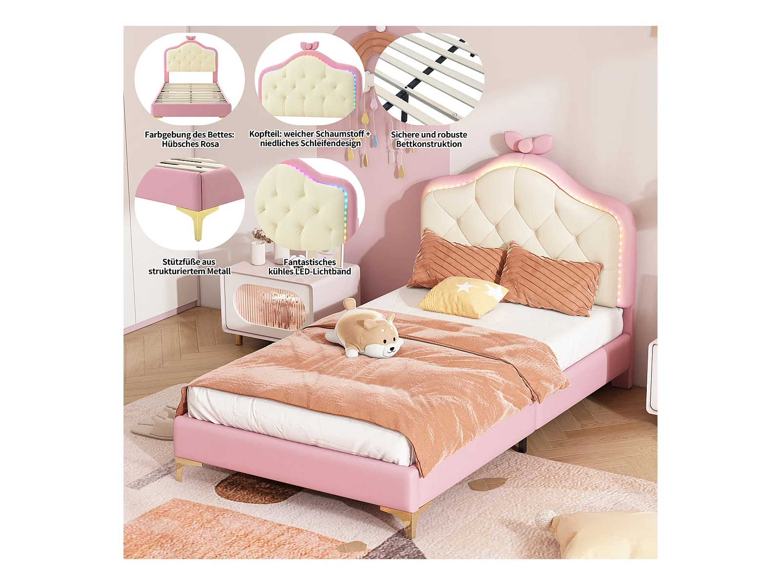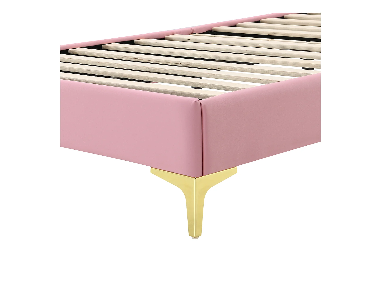 Lit simple 90x200cm, lit capitonné PU avec bandes LED couleurs variées, sommier à lattes, et tête de lit en forme de vague avec point de traction, rose