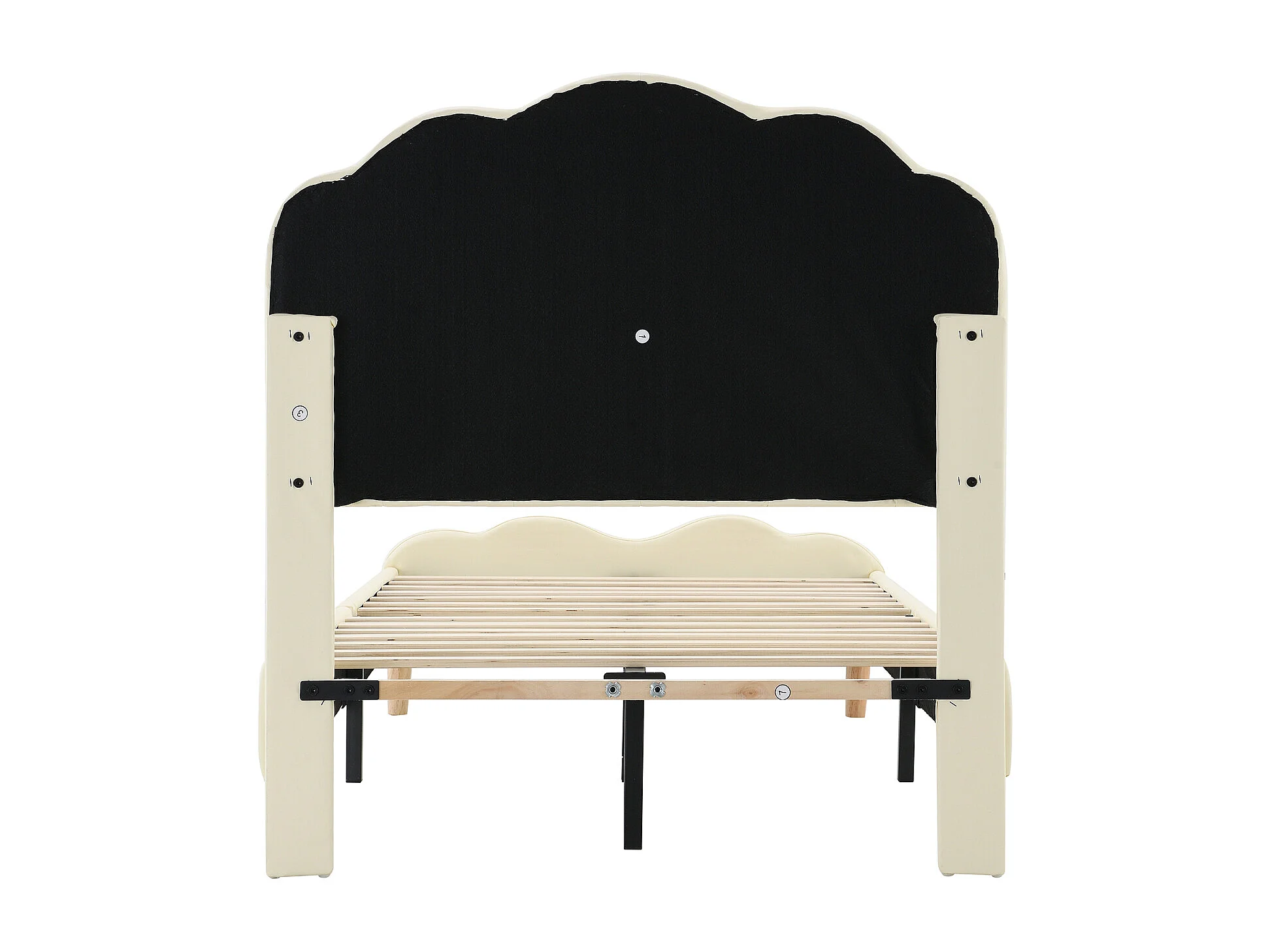 Lit simple 90x200cm, lit capitonné PU avec bandes LED couleurs variées, sommier à lattes, et tête de lit en forme de vague, blanc