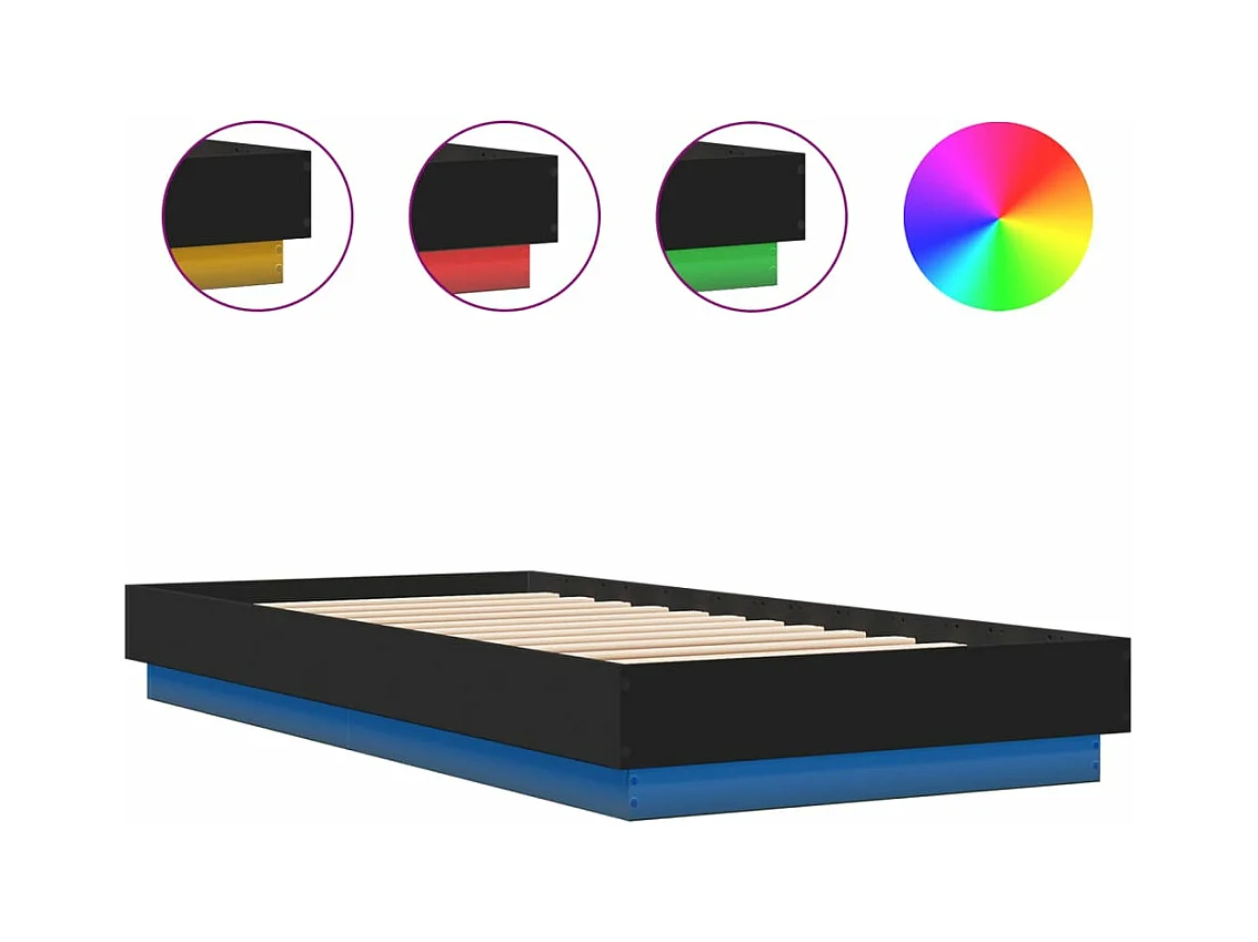 Lit simple avec lumières LED noir 100x200 cm FR72268