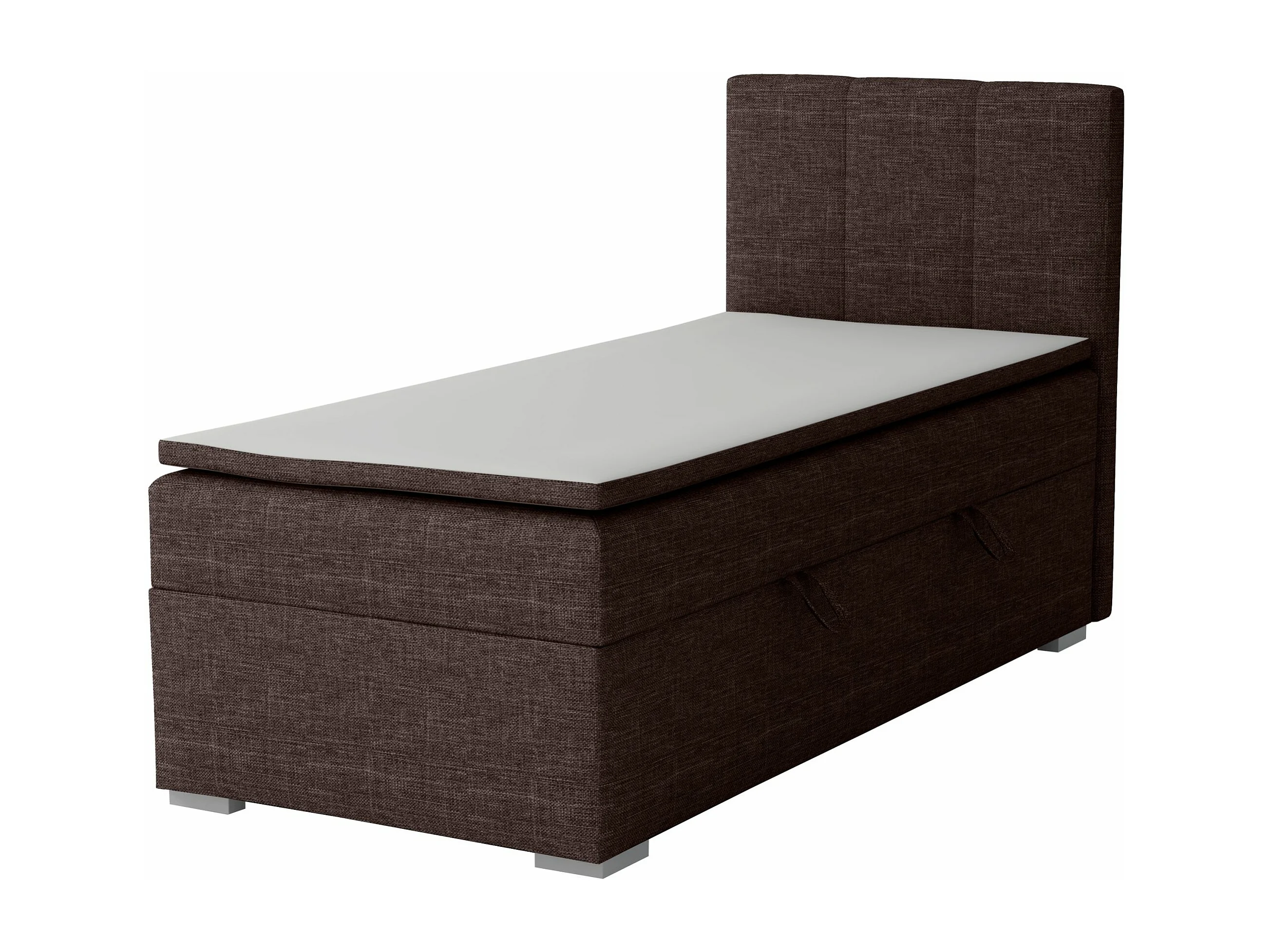 LIT SIMPLE avec tiroir de rangement et surmatelas, côté droit Monaco Mini 90x200 cm, Lux 13 (Marron foncé)