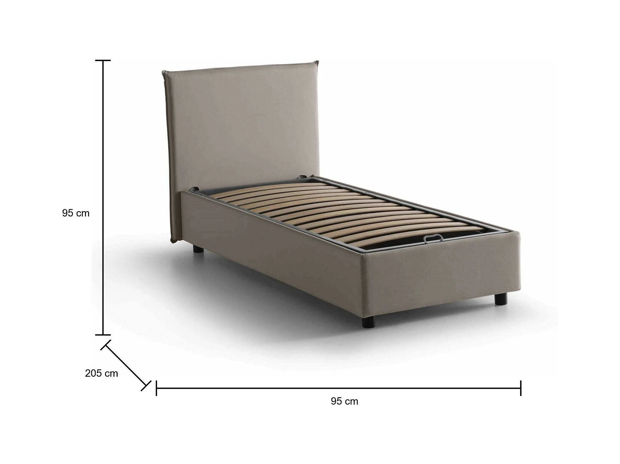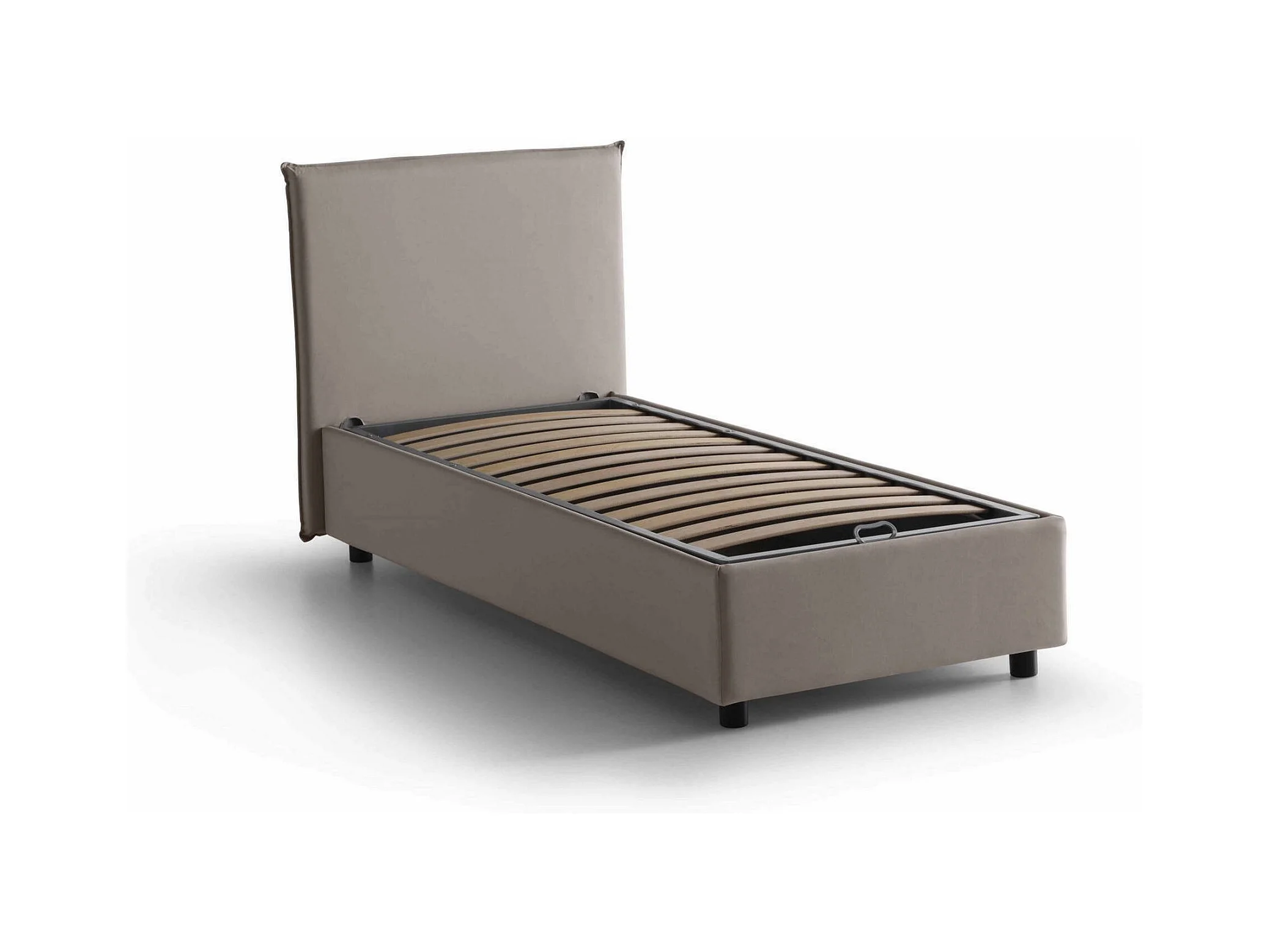 Lit simple Bruna, Lit coffre avec revêtement en tissu, 100% Made in Italy, Ouverture frontale, adapté pour matelas 80x190 cm, Taupe